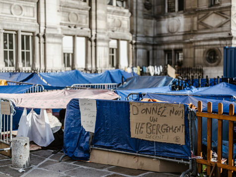 More than 250 people, mostly families and single women living on the streets with their children, have been camping for a week in front of Paris City Hall in an effort to find decent accommodation. Most of the families are being supported by the Utopia56 association. In Paris, as in other major French cities, the encampment of exiled people reflects the lack of political will to provide dignified accommodation, perpetuating the cycles of setting up camps, expulsions, or sheltering in a system that is always undersized compared to real needs.