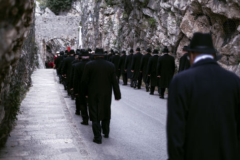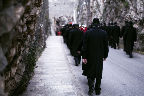 Some men are dressed in black suits with black hats at the Saint-Blaise festival.