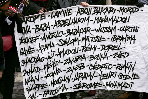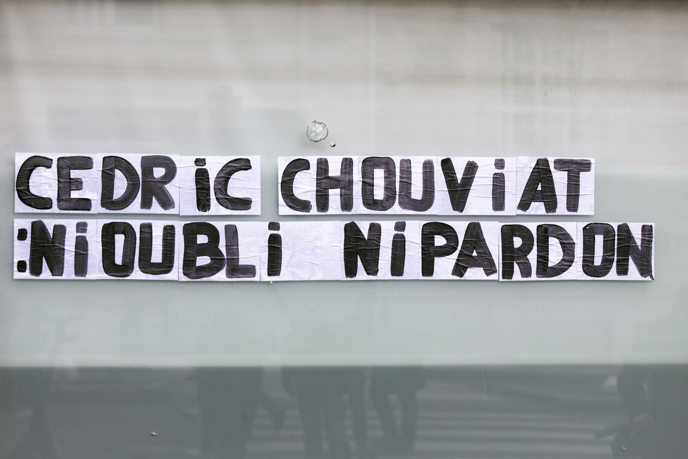 Tribute to Cédric Chouviat killed last year by 4 policemen still on duty.