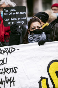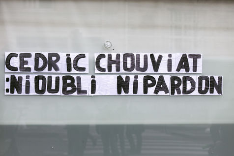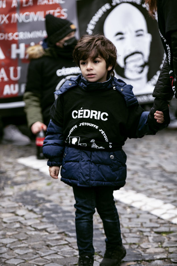 Hommage à Cédric Chouviat tué l'année dernière par 4 policiers toujours en fonction.