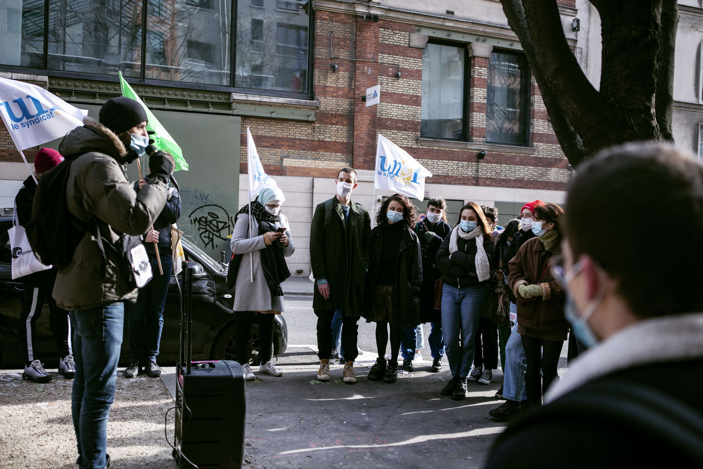 Rassemblement devant le Campus France en soutien aux étudiants étrangers précarisés qui demandent la régularisation de leurs droits et une facilité d'accès à leur titre de sejour.