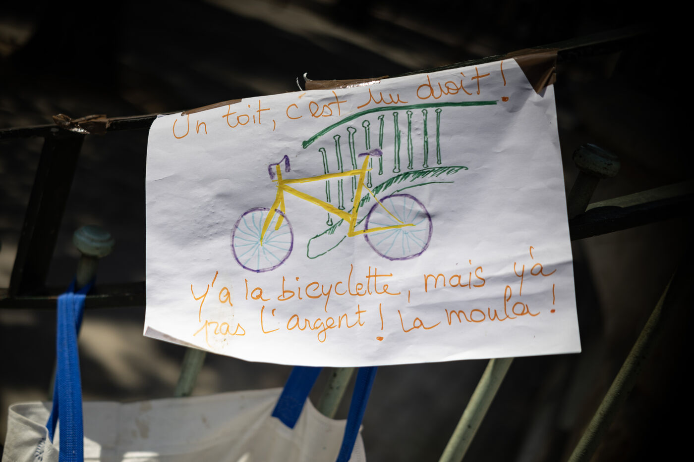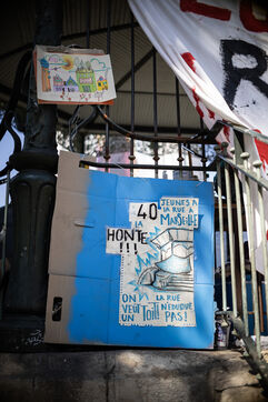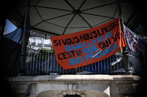 The kiosk on Leon Blum square in Les Réformés occupied by young exiles after ADDAP 13 refused to recognize their minority status.