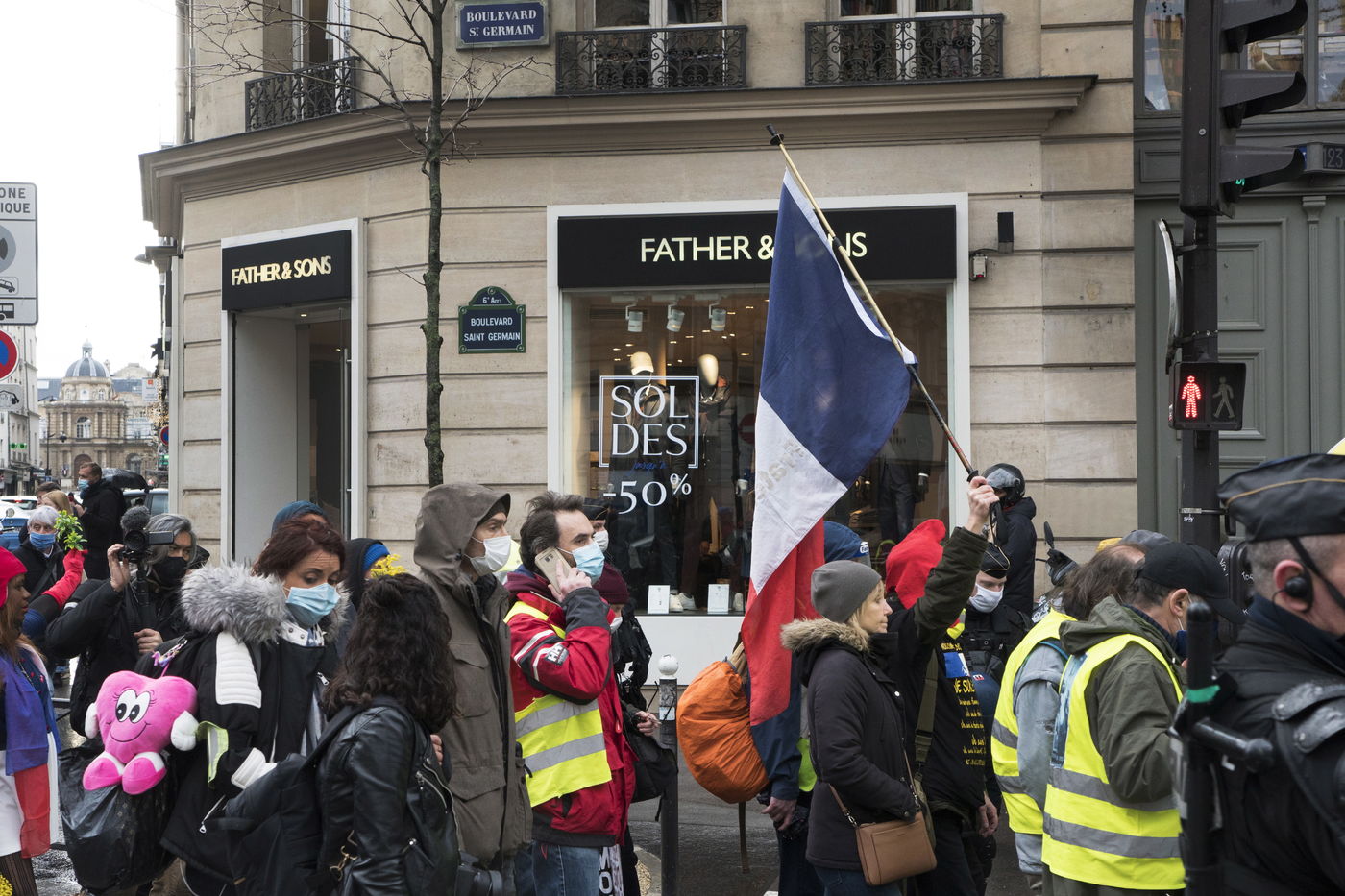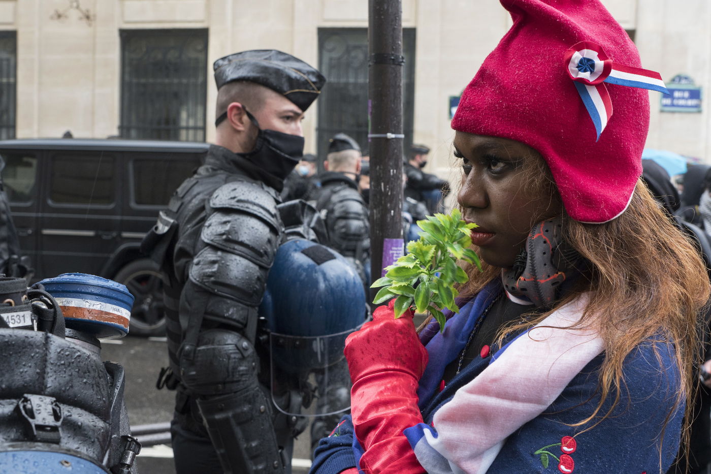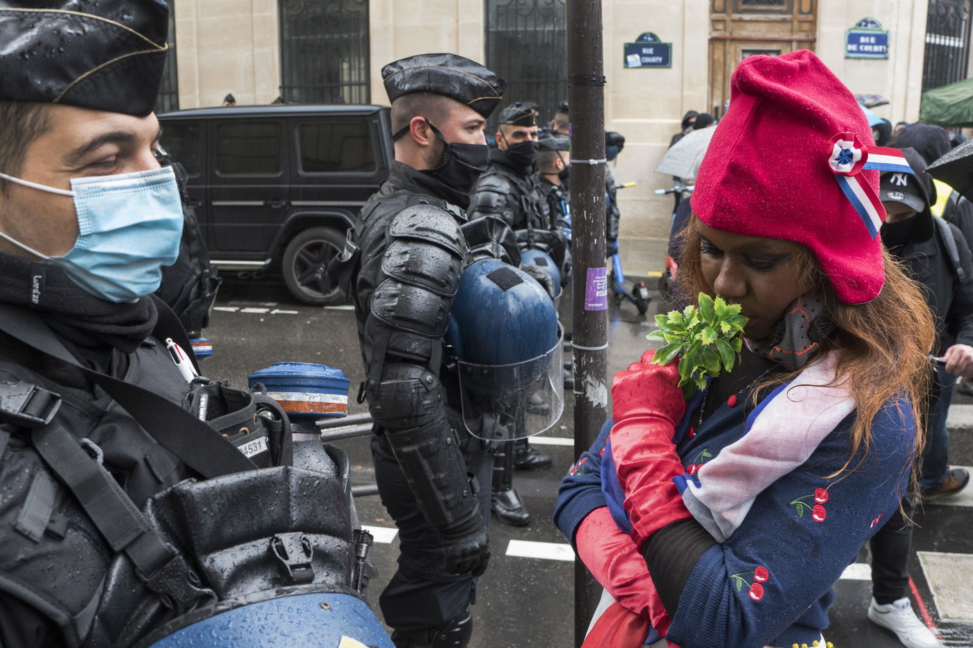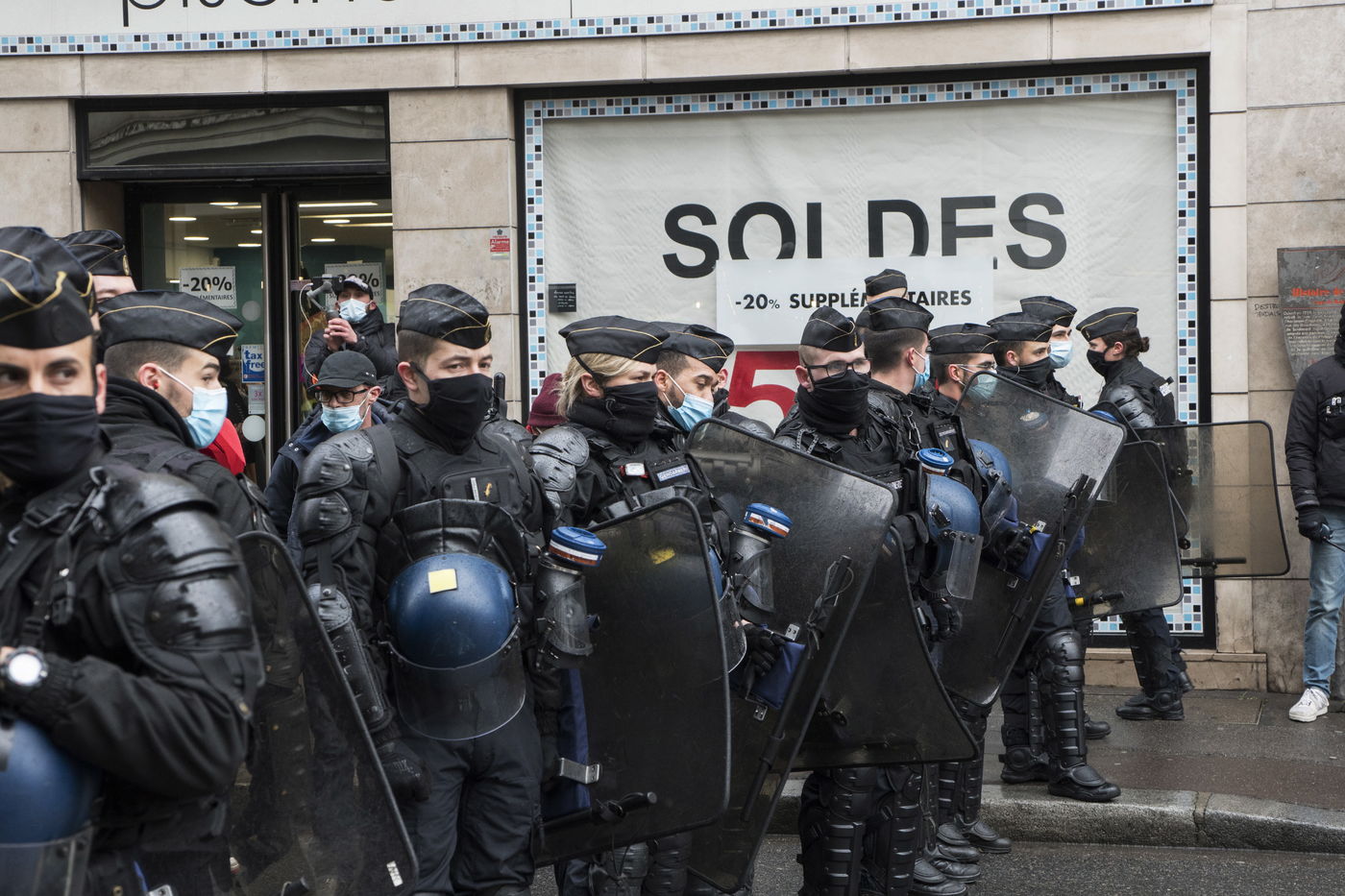 Des milliers de manifestants en France se sont rassembles pour la Marche Unitaire des libertes pour protester contre le loi française, l article 24 de la Securite Globale, interdit la publication d images identifiant des policiers francais. Les journalistes et les organisations de defense des droits ont critique la nouvelle loi. Forte presence policiere lors de la manifestation.