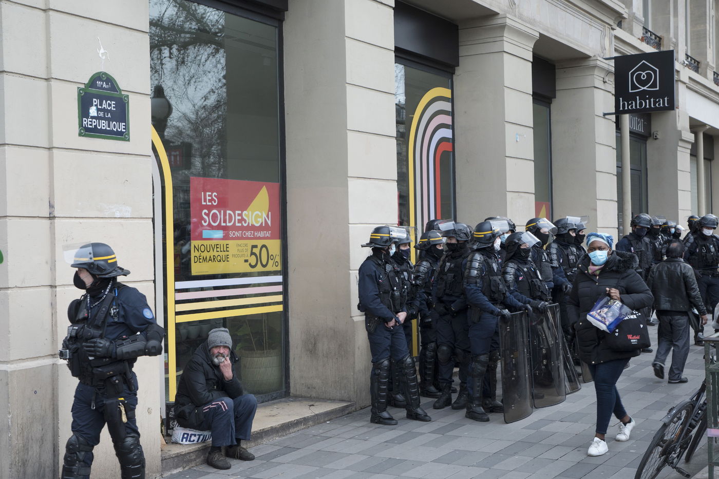 Strong police presence during the demonstration. Thousands of demonstrators in France gathered for the Unitary March of Freedoms to protest against French law, Article 24 of Global Security, bans the publication of images identifying French police officers. Journalists and rights groups criticized the new law