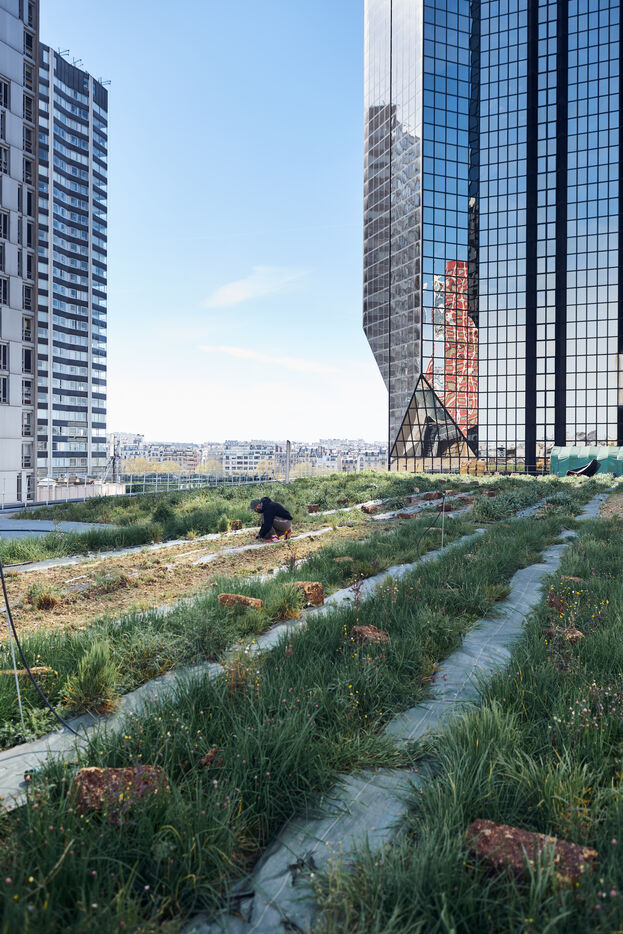 The Weshgrow company is creating urban farms in Paris. This one is a market garden on the roof of the Beaugrenelle shopping center, in the heart of Paris, a stone's throw from the Eiffel Tower.