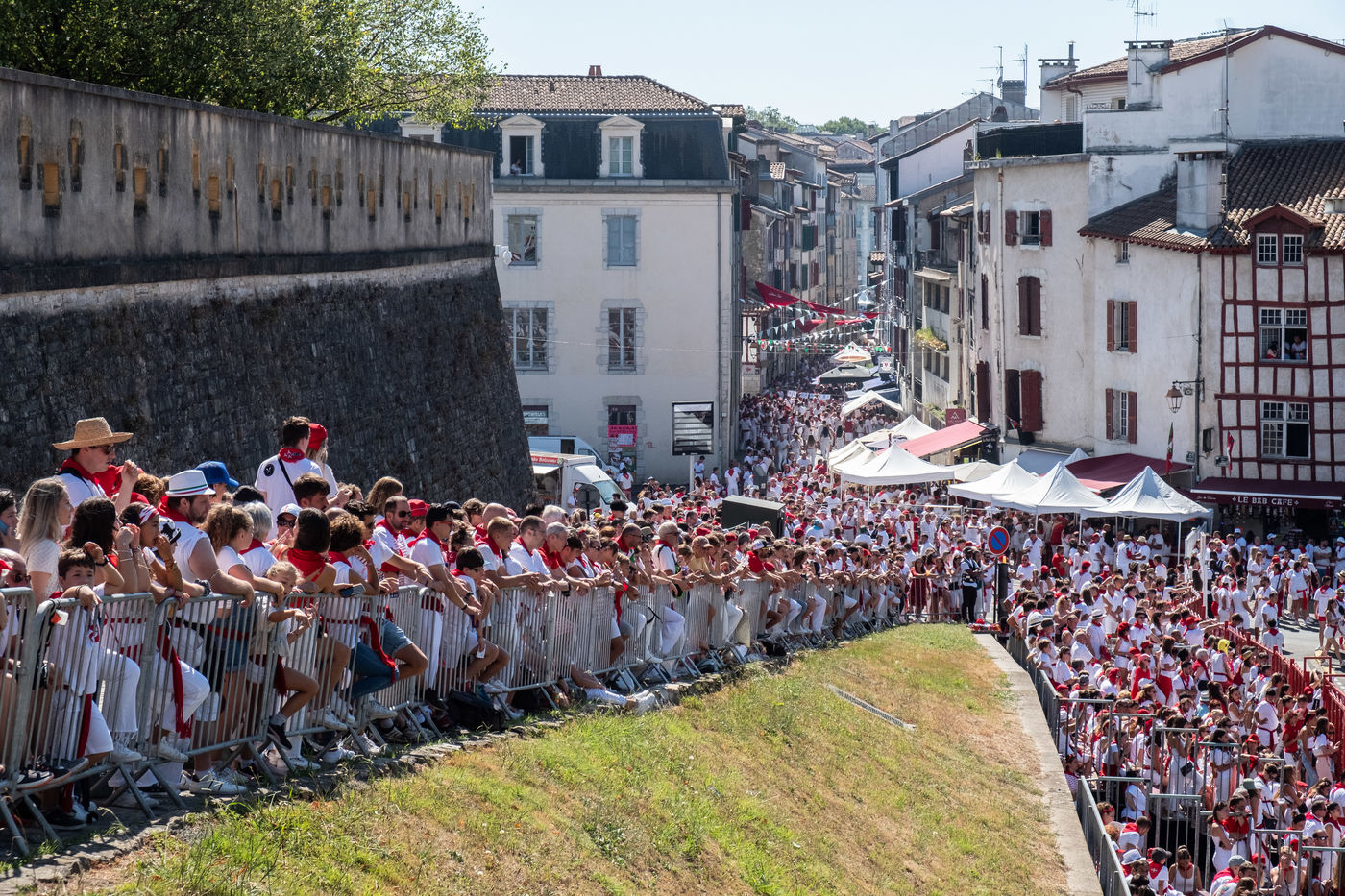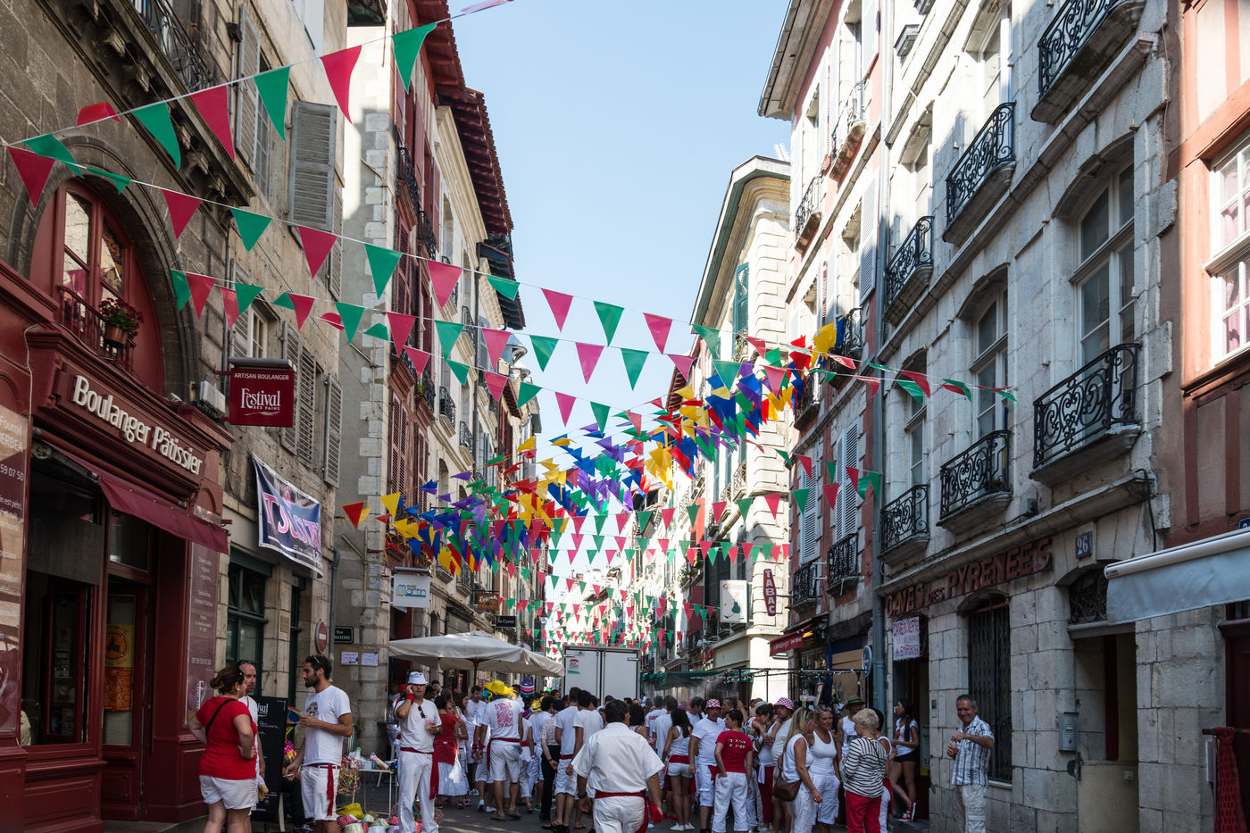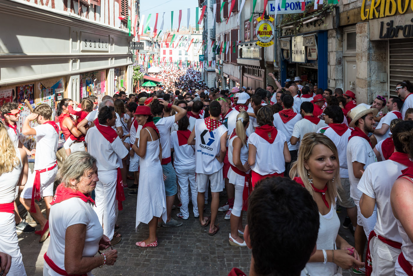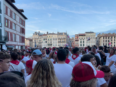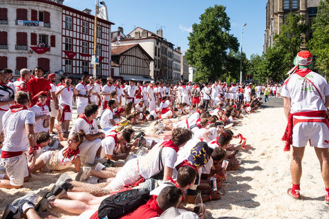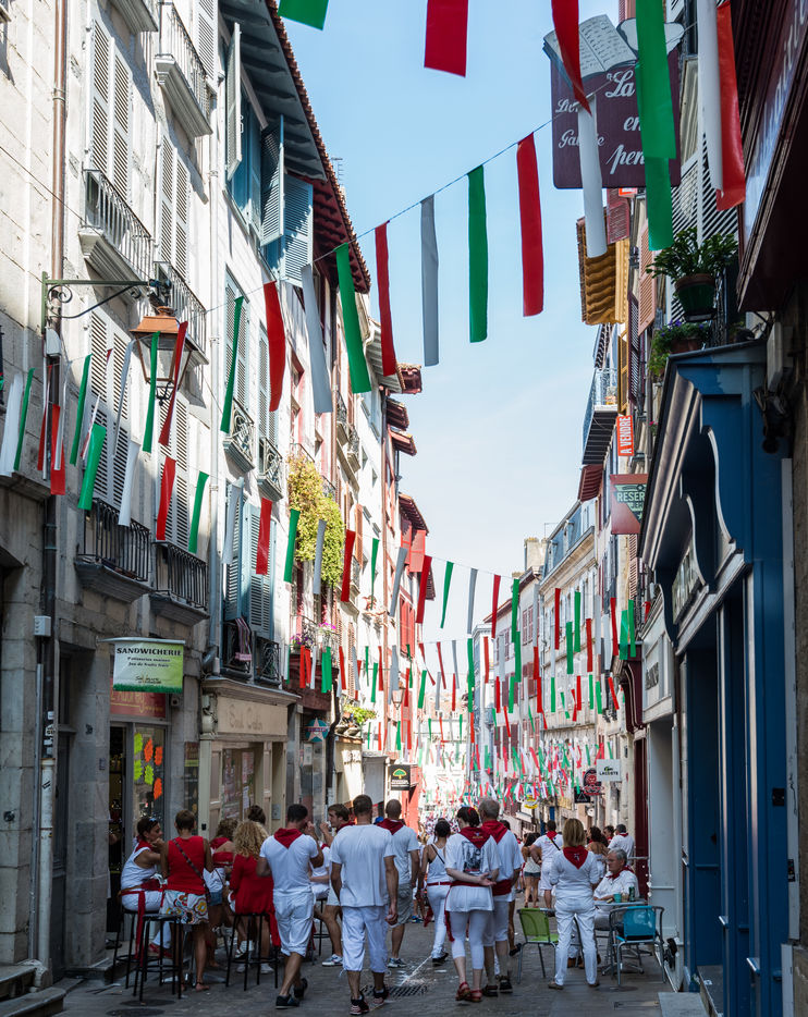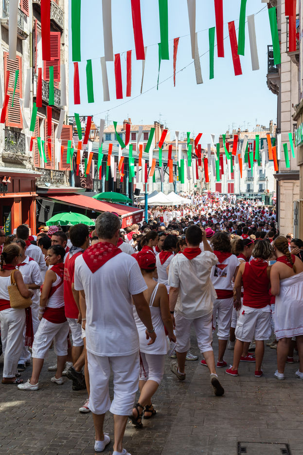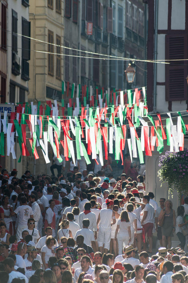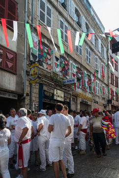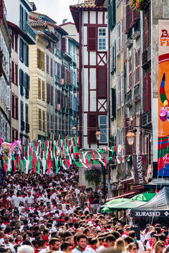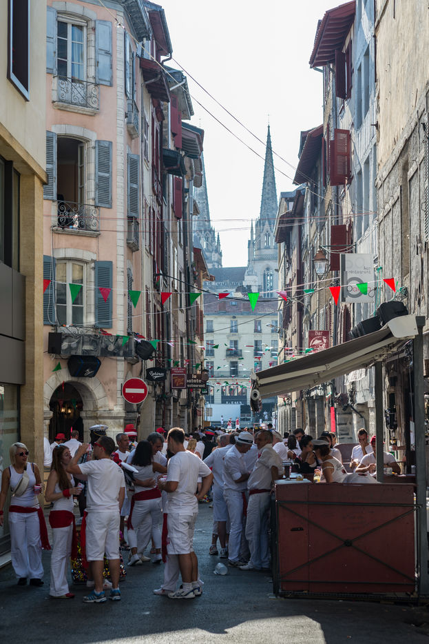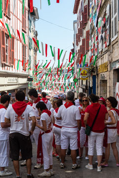 The city of Bayonne receives several hundred thousand people during the five days of the festival. The streets are often crowded with people dressed traditionally in red and white, going from one bar to another, chatting and celebrating