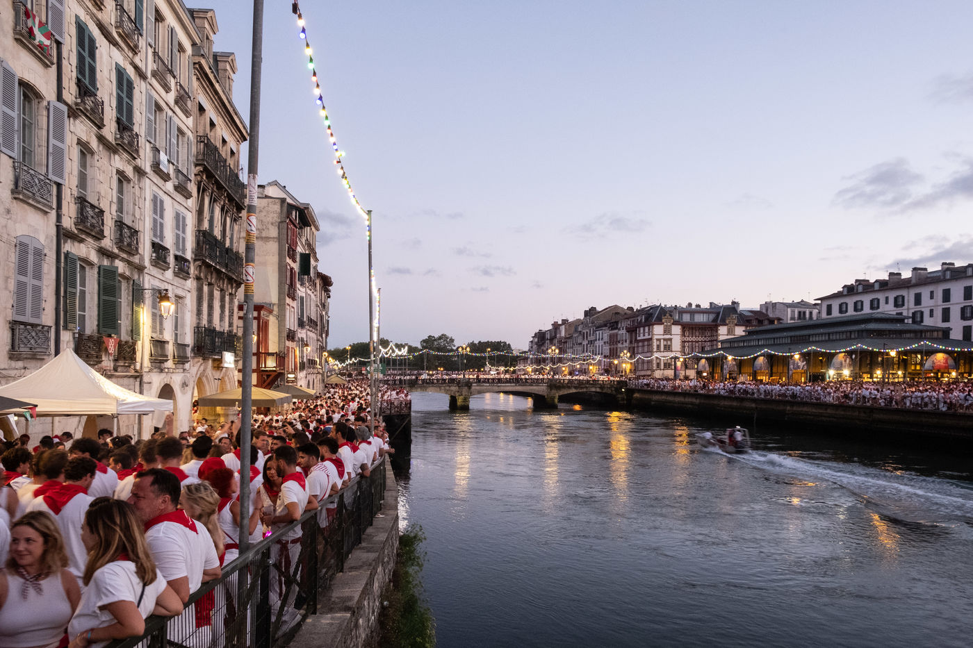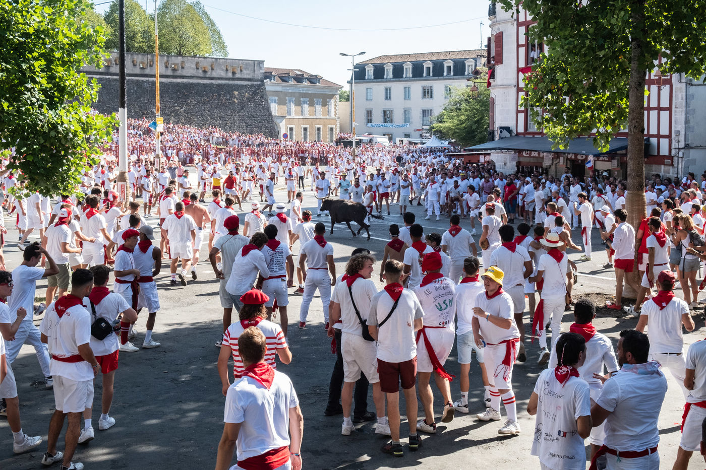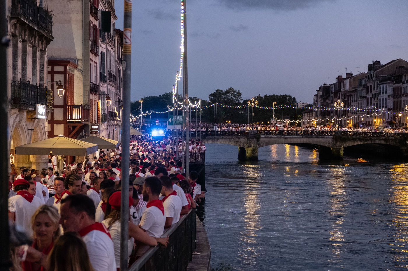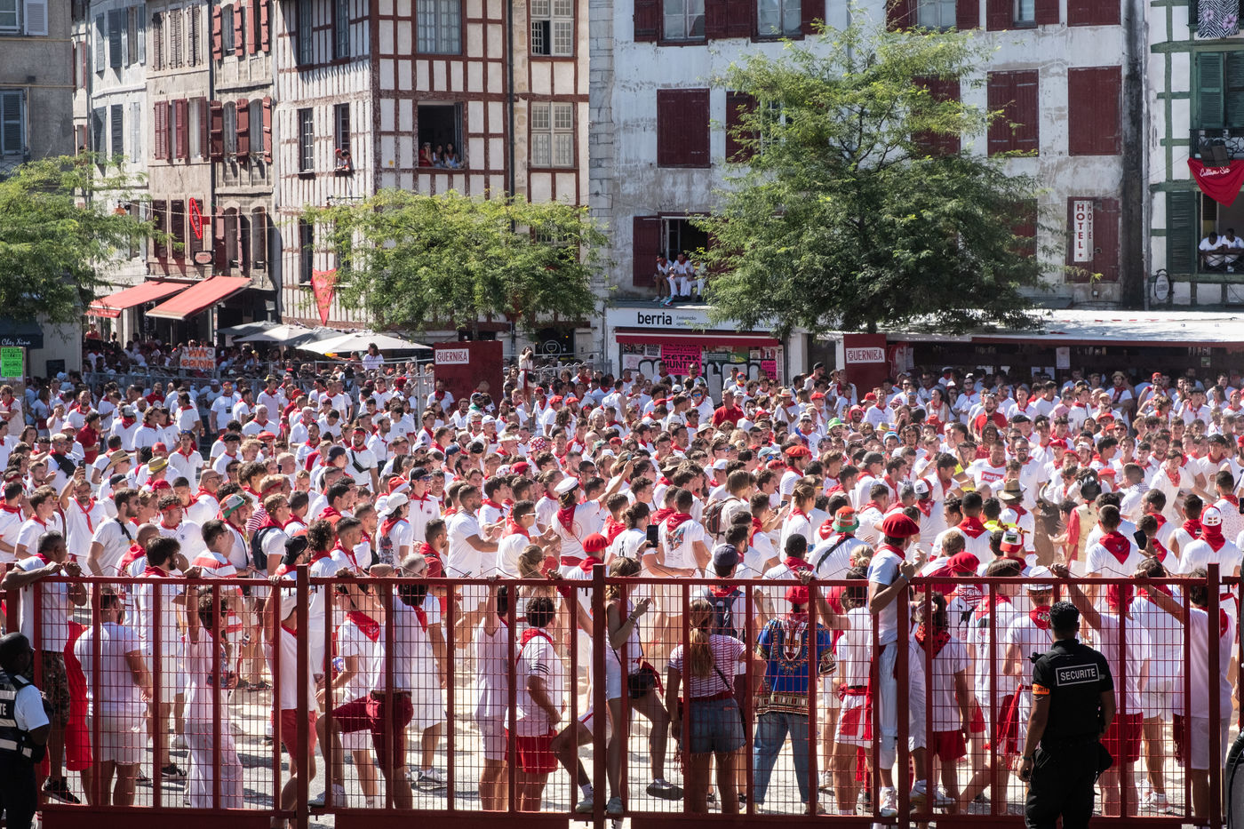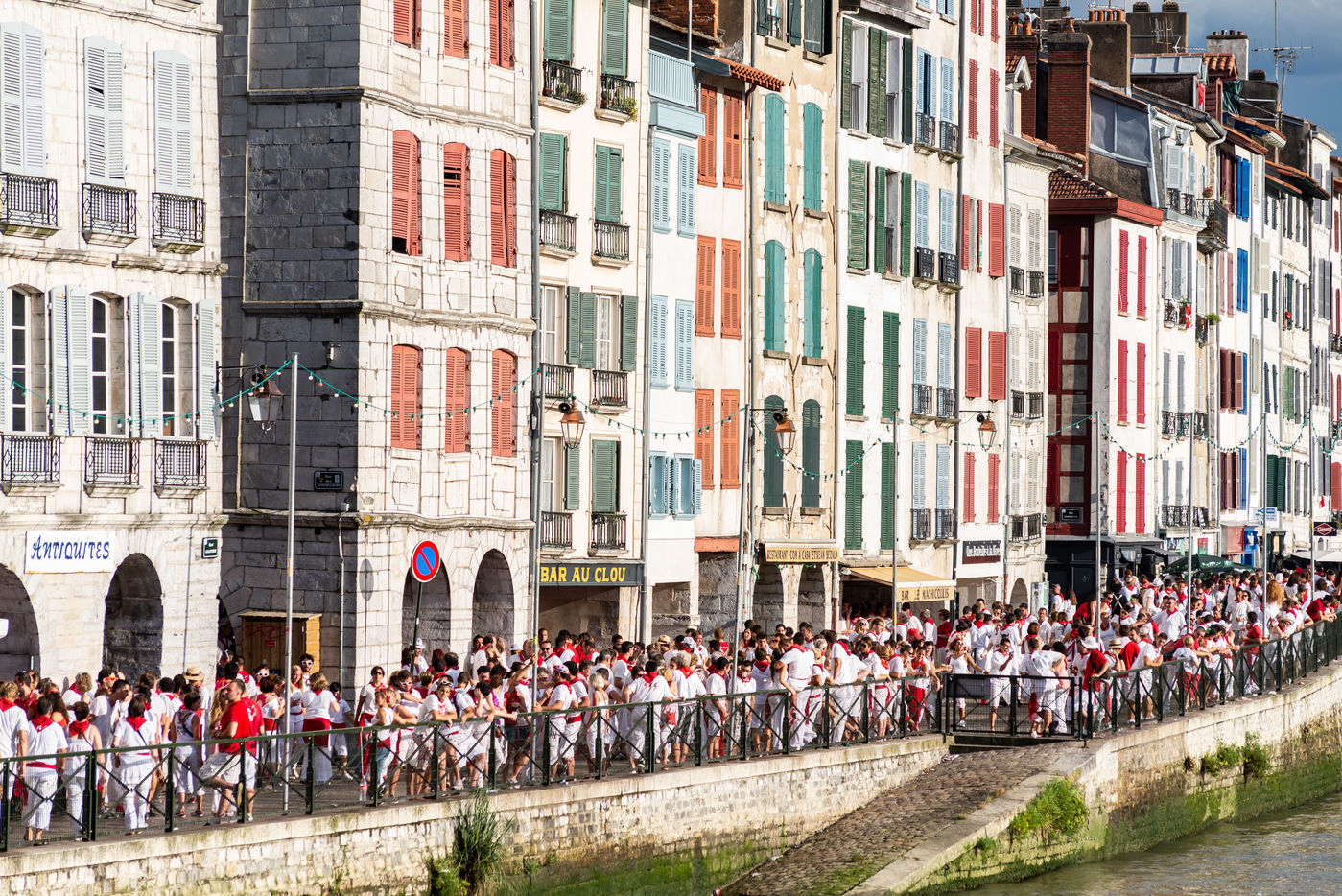 The city of Bayonne receives several hundred thousand people during the five days of the festival. The streets are often crowded with people dressed traditionally in red and white, going from one bar to another, chatting and celebrating