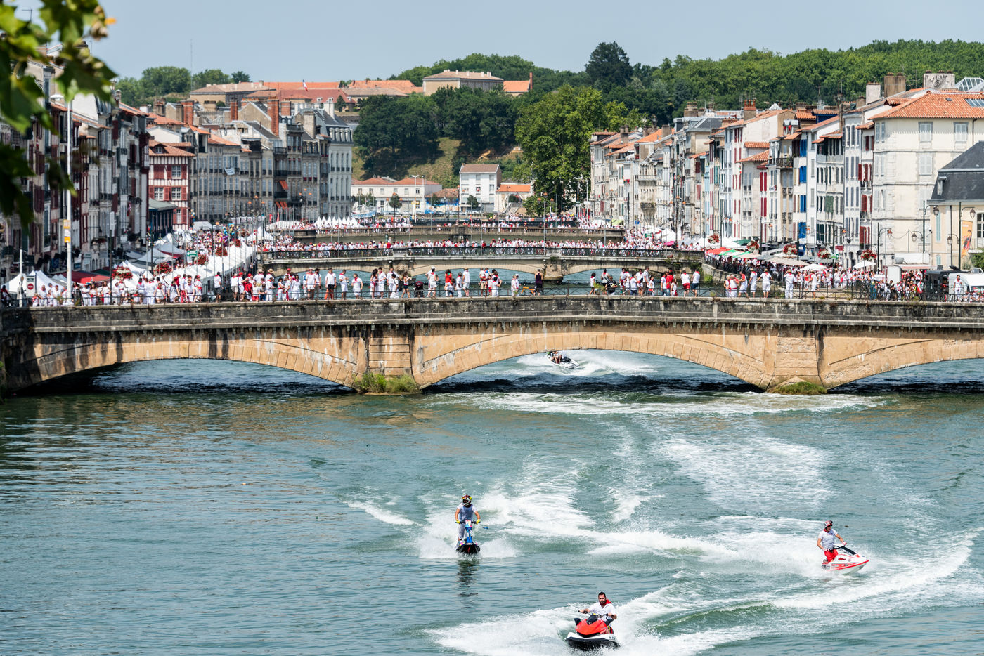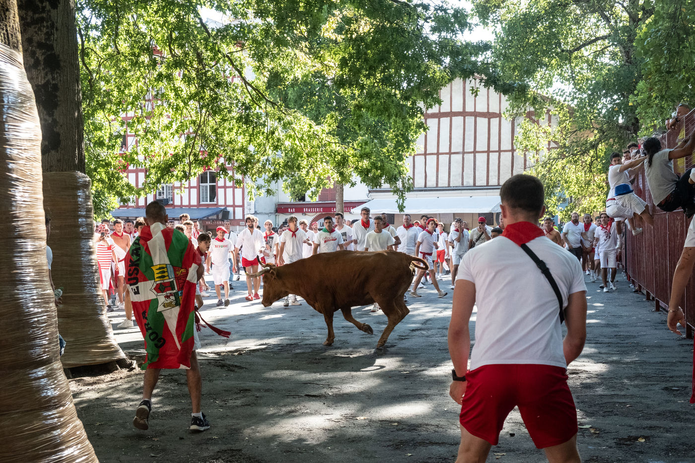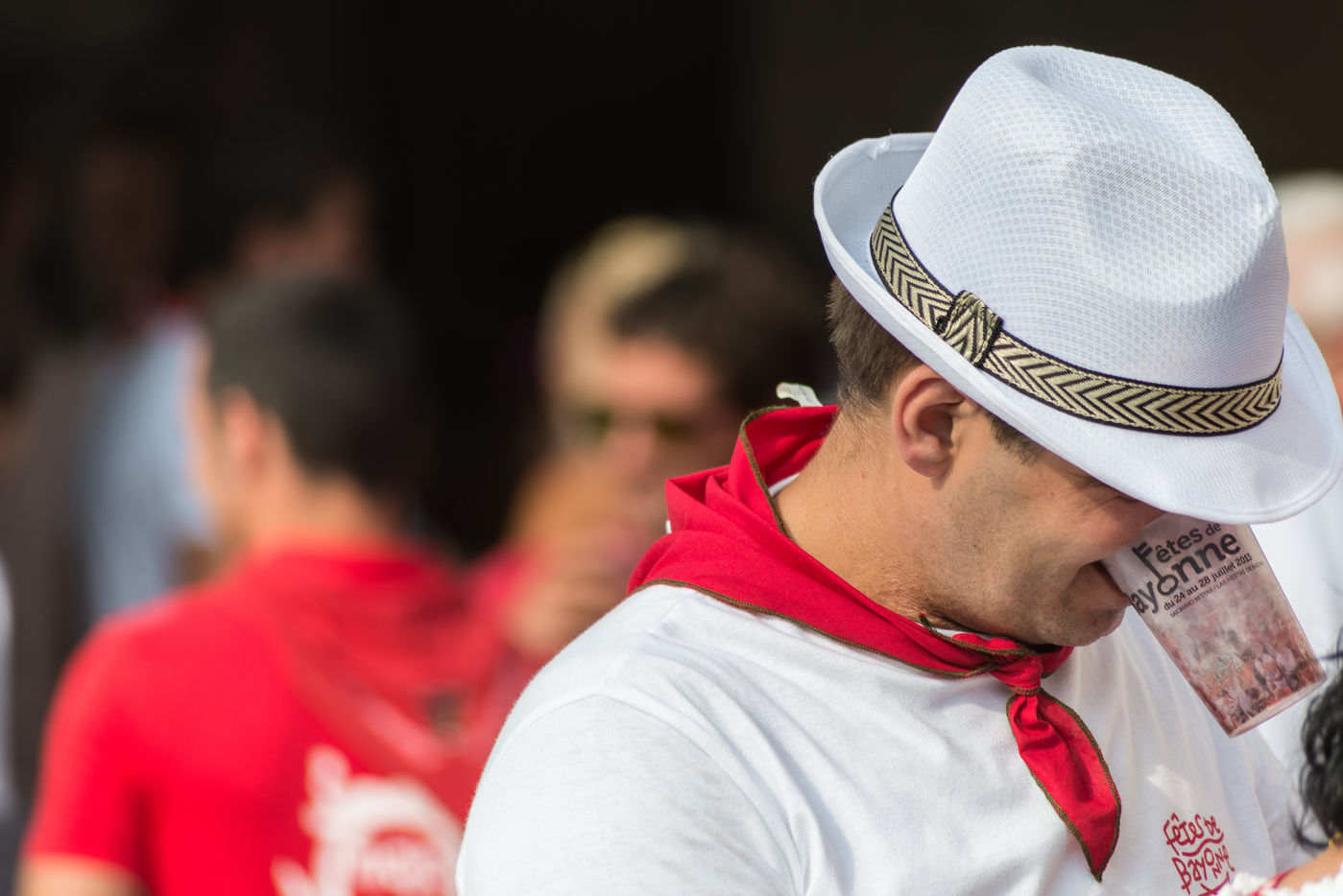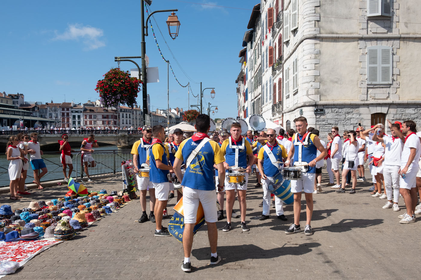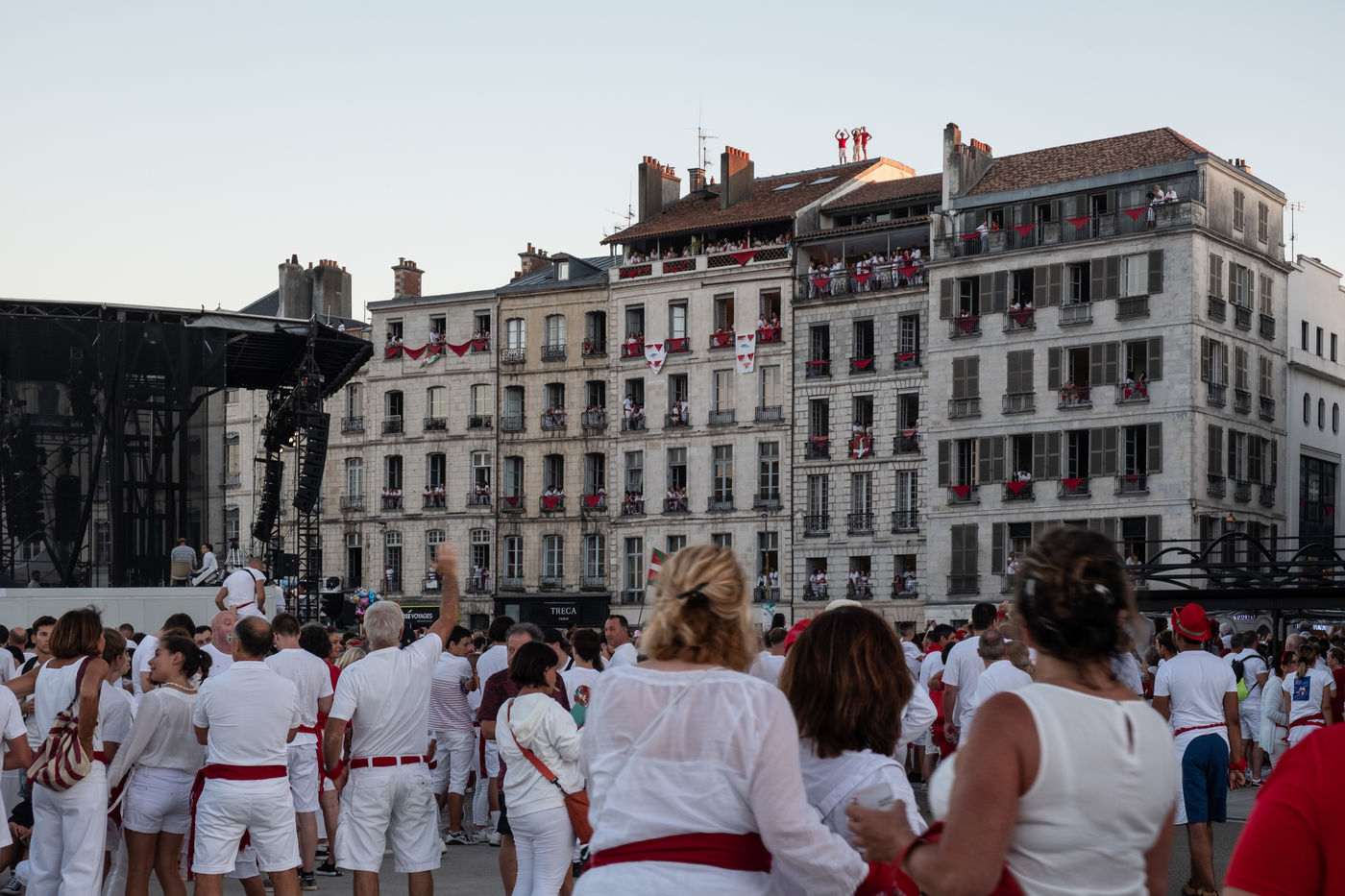 The city of Bayonne receives several hundred thousand people during the five days of the festival. The streets are often crowded with people dressed traditionally in red and white, going from one bar to another, chatting and celebrating