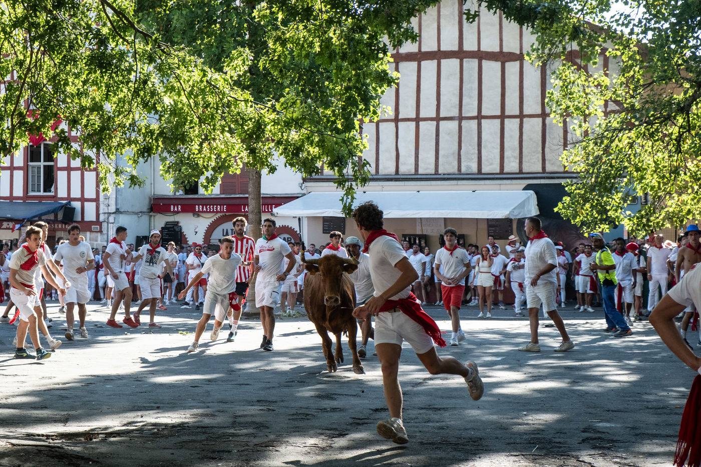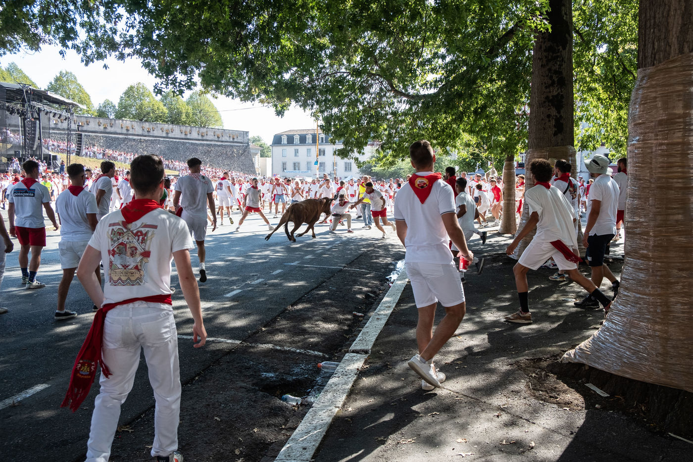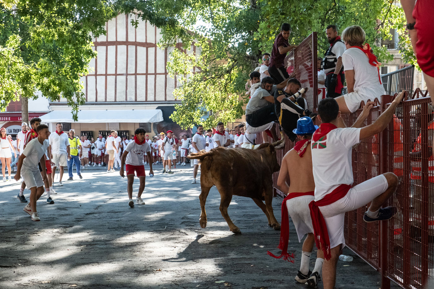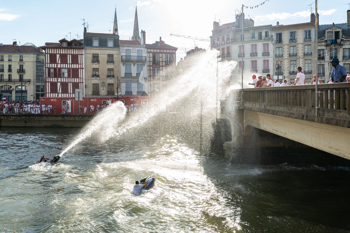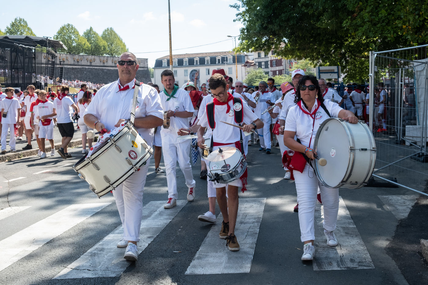 The city of Bayonne receives several hundred thousand people during the five days of the festival. The streets are often crowded with people dressed traditionally in red and white, going from one bar to another, chatting and celebrating
