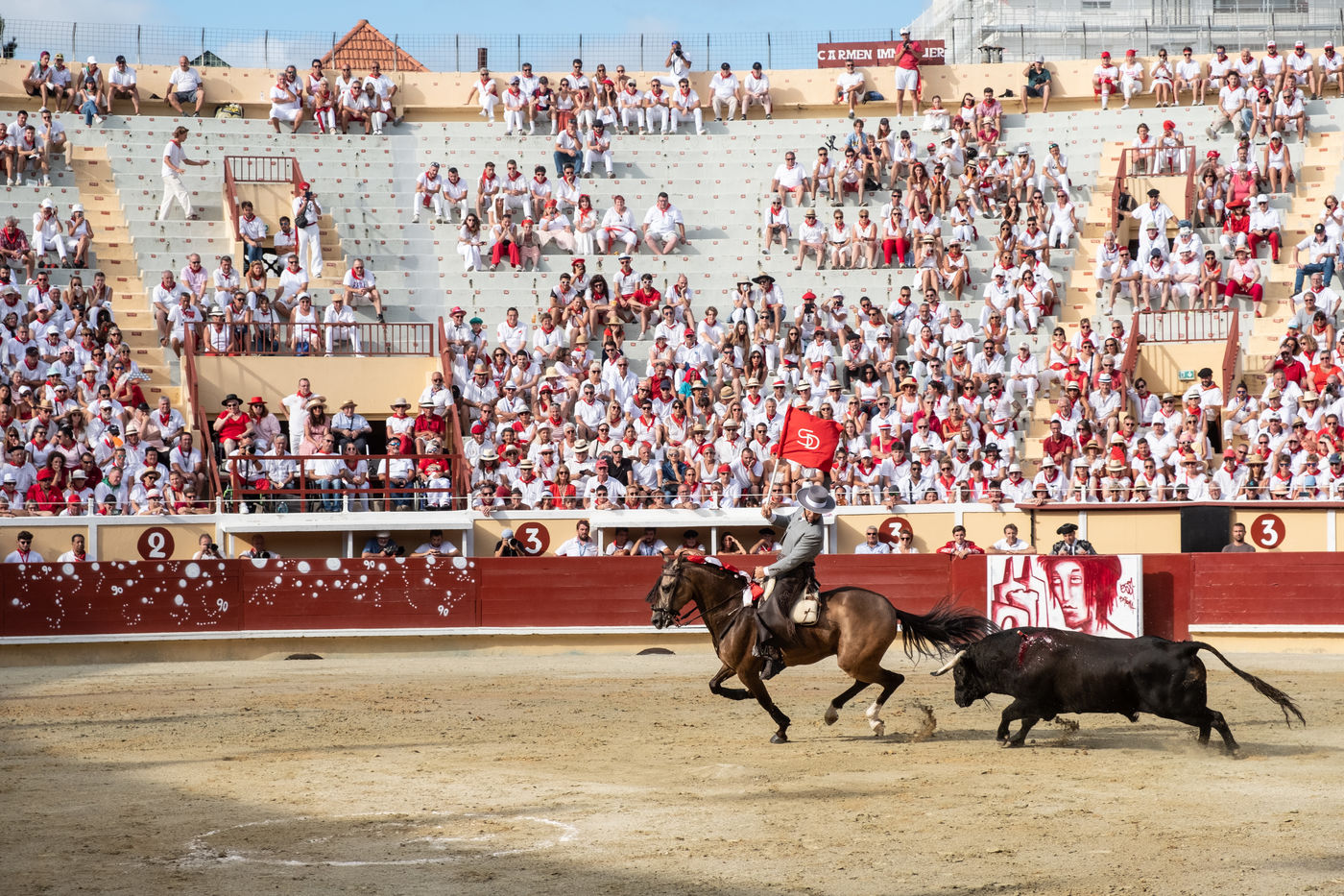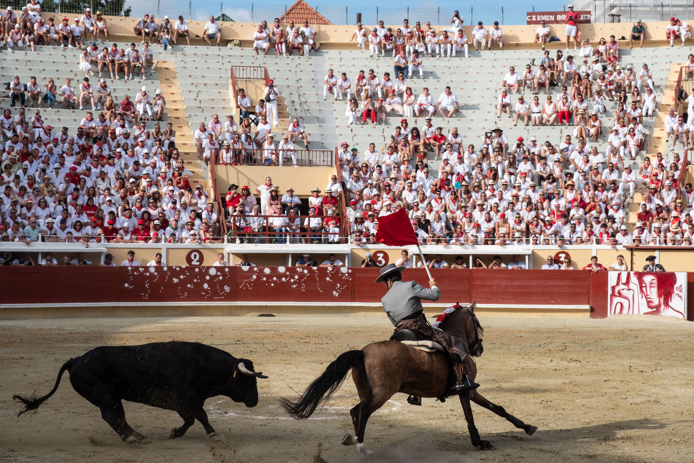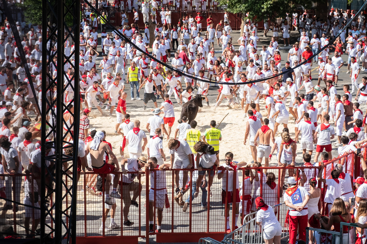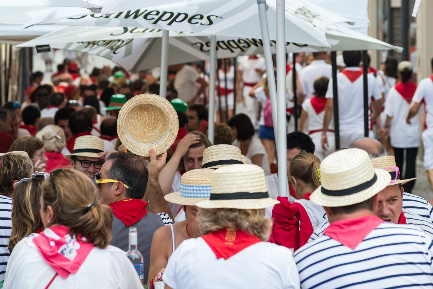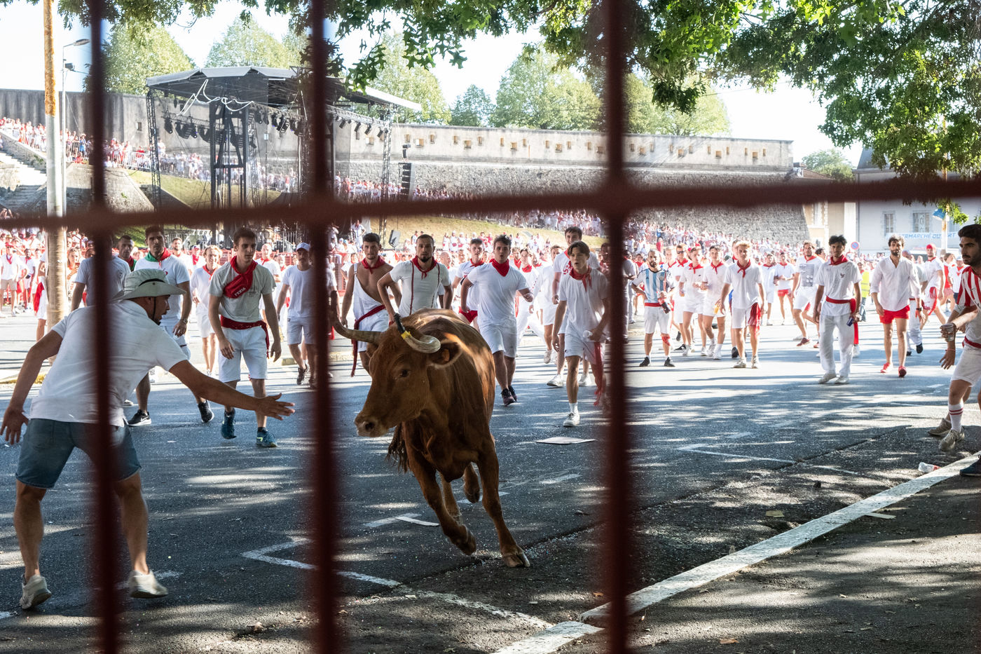 The city of Bayonne receives several hundred thousand people during the five days of the festival. The streets are often crowded with people dressed traditionally in red and white, going from one bar to another, chatting and celebrating