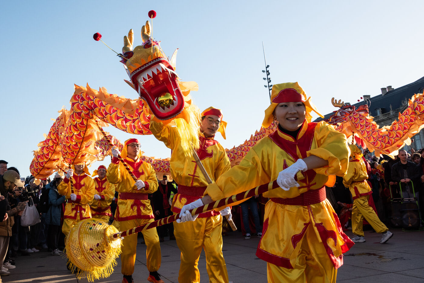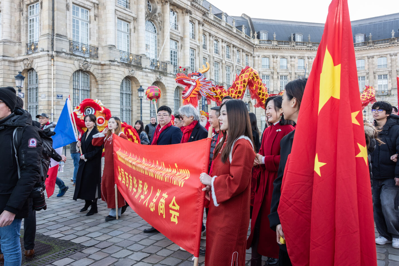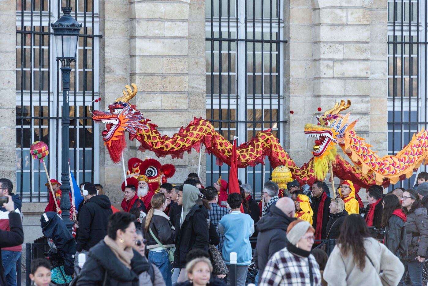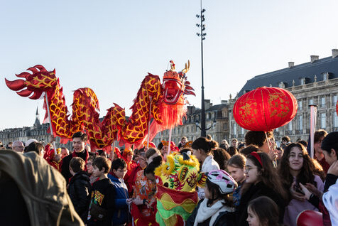 Starting in the Place de la Victoire, it ended with a gathering at the Miroir d'Eau for the traditional lion and dragon dance. A large crowd gathered for the occasion, under the late afternoon winter sun.
