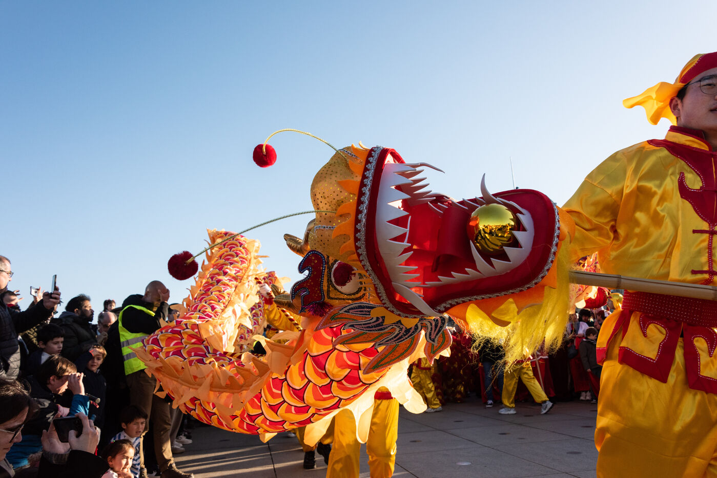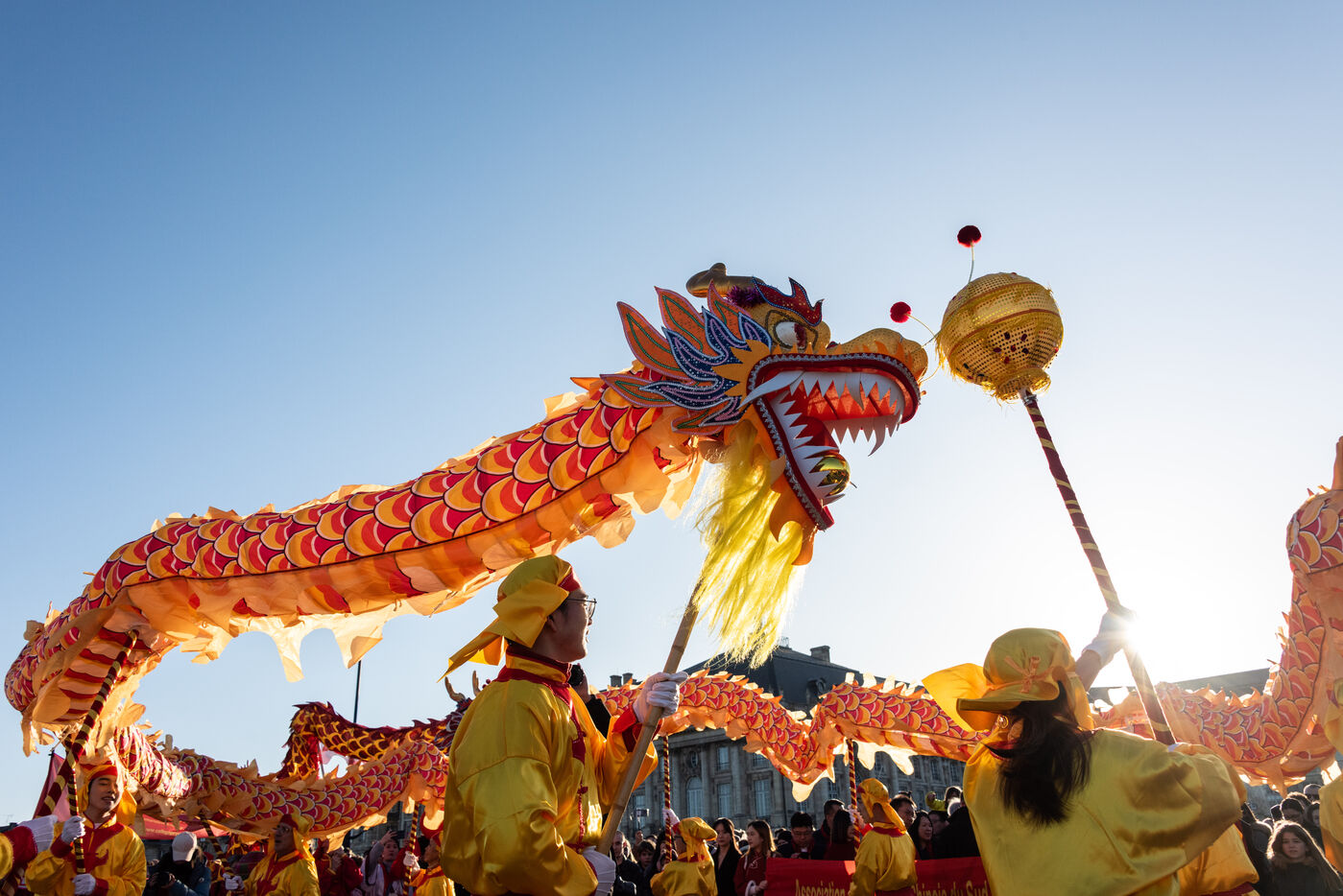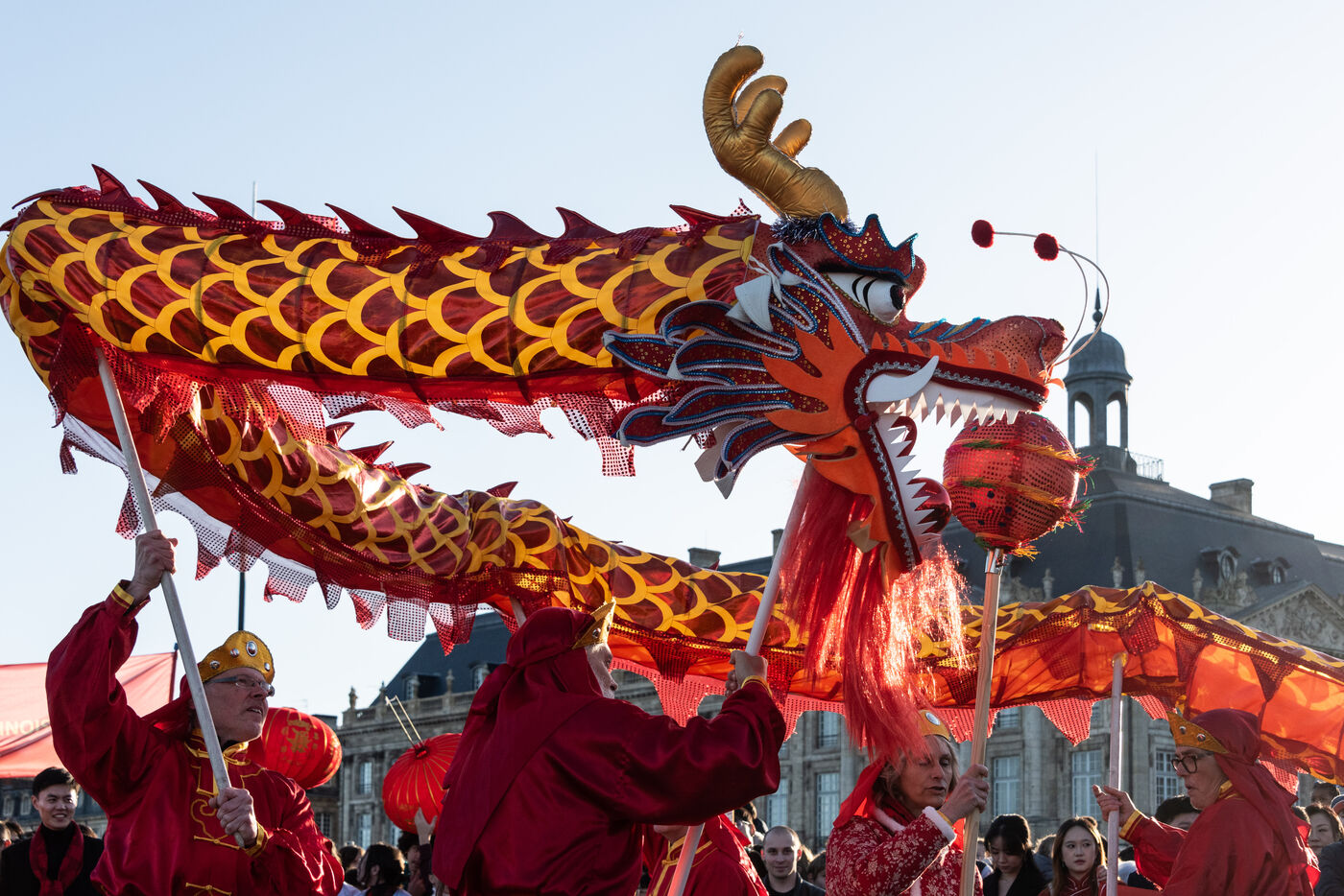 Starting in the Place de la Victoire, it ended with a gathering at the Miroir d'Eau for the traditional lion and dragon dance. A large crowd gathered for the occasion, under the late afternoon winter sun.