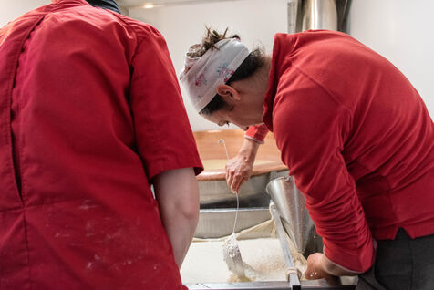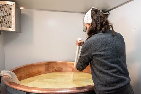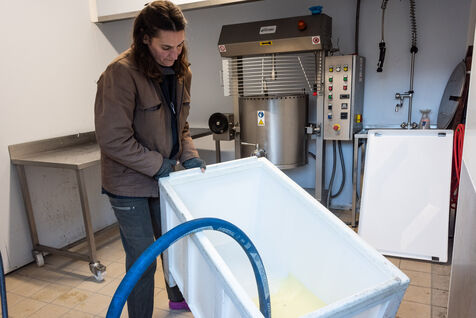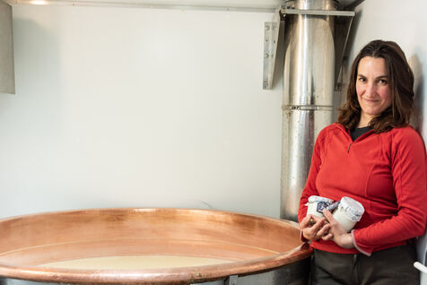 For the last 5 years, every morning (from December to July) she has been collecting around 800 litres of whey from the farms around her home, used to make ewe's milk tomme. She then transforms it in her small mobile cheese dairy into greuil, the equivalent of ricotta. ‘Whey is a bit of a taboo because you're not allowed to throw it away. But it's complicated for farmers to get rid of it. Some give it to pigs, others spread it on the fields, but the acidity can kill the grassland, and you have to be careful about the weather to avoid polluting the water tables. Marie sells around 50% of her home-grown produce direct to local shops and self-service outlets, and the rest to wholesalers.