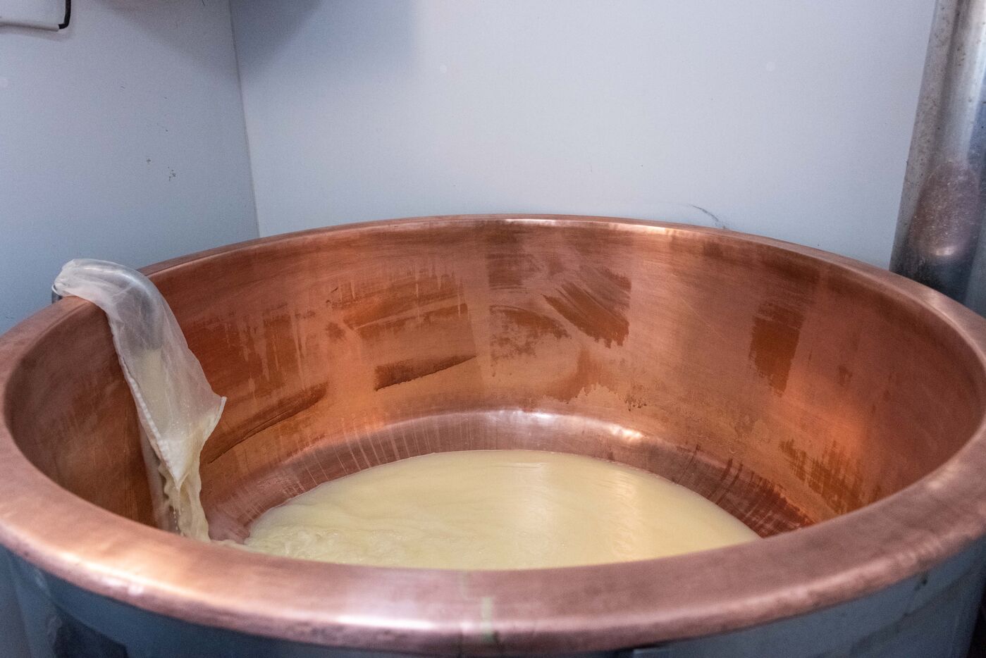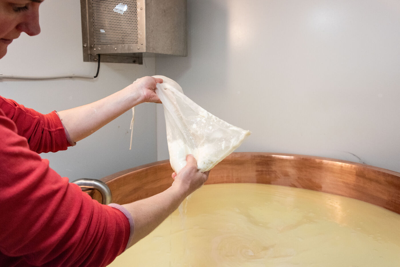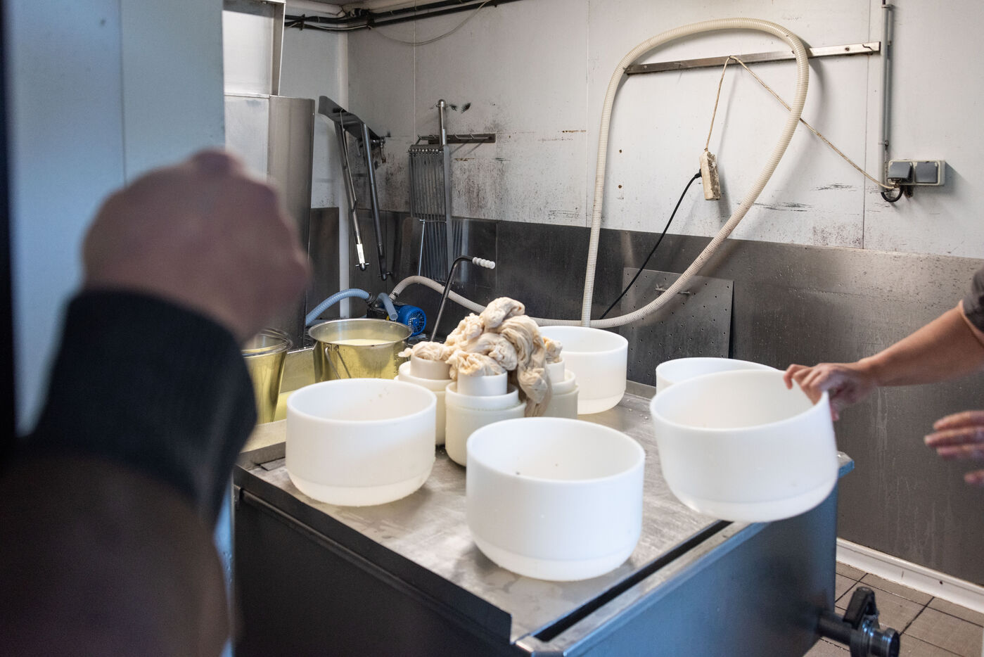 Depuis 5 ans, elle passe récolter tous les matins (de décembre à juillet) environ 800 litres de petit lait issu de la fabrication de la tomme de brebis dans les fermes aux alentours de chez elle. Puis elle le transforme dans sa petite fromagerie mobile en greuil, l’équivalent de la ricotta. « C’est une peu tabou le petit lait parce que c’est interdit de le jeter. Mais c’est compliqué pour les paysans de s’en débarrasser ». Certains le donnent aux cochons, d’autres l’épandent mais l’acidité peut tuer la prairie, et puis il faut faire attention à la météo pour éviter de polluer les nappes ». Marie vend environ 50% de sa production artisanale en circuit direct (commerces locaux et libre-service), le reste à des grossistes.