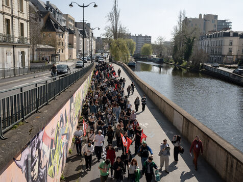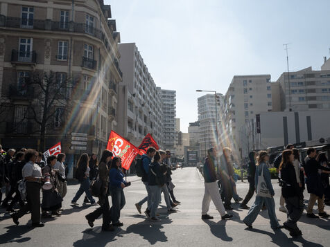Students and teachers protested to demand more funding for French universities and public research in Rennes in the Ille-et-Vilaine department of France in March 27, 2025. Many unions such as the CFDT, the CGT, FO or Solidaires called to demonstrate.