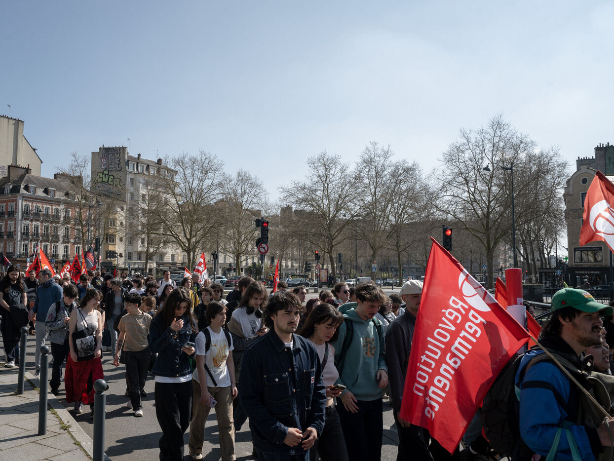 Étudiants et professeurs ont manifesté pour exiger plus de fonds pour l'université et la recherche à Rennes (Ille-et-Vilaine), le 27 mars 2025. De nombreuses organisations syndicales comme la CFDT, la CGT, FO ou Solidaires avaient appelé à manifester.
