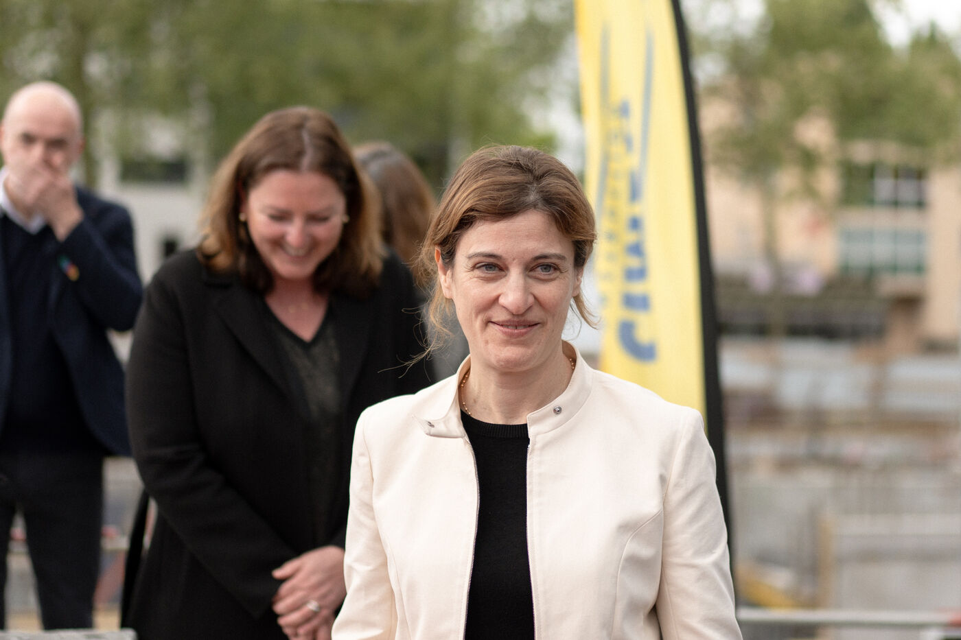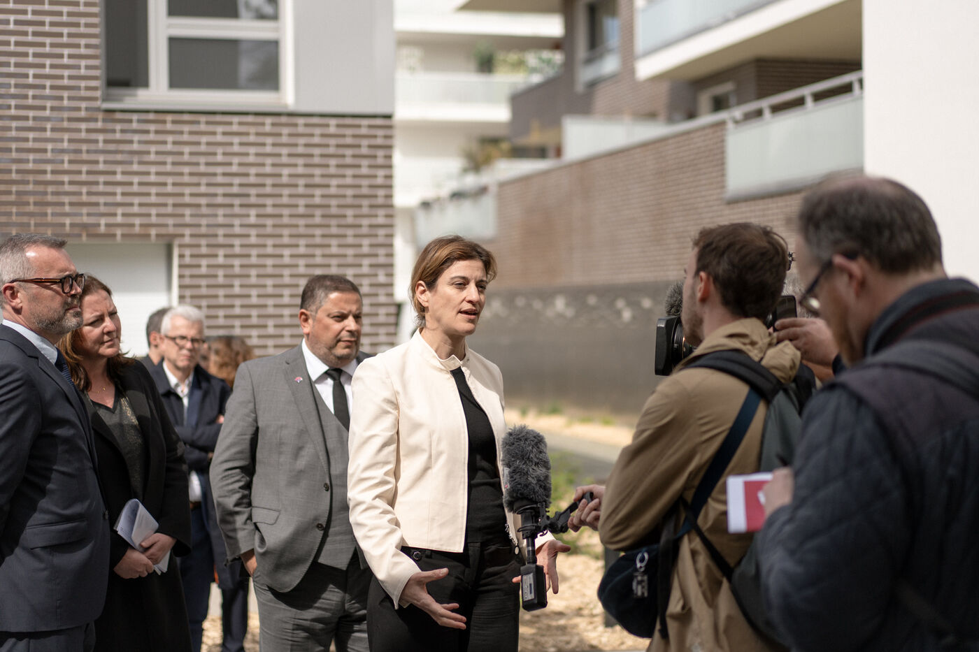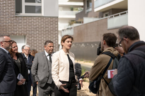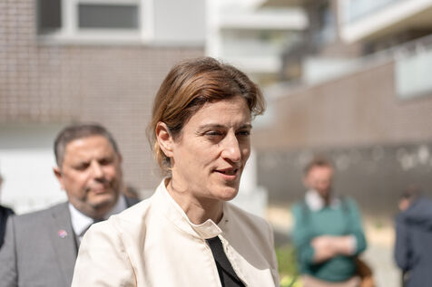 Juliette Méadel, the French minister of the City, visited Rennes in the Ille-et-Vilaine department of France on April 22, 2025. She visited a newly built house and set the first stone of an upcoming residential building.