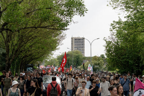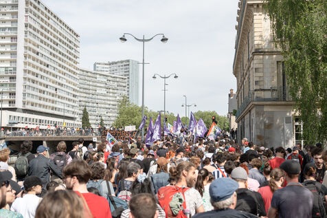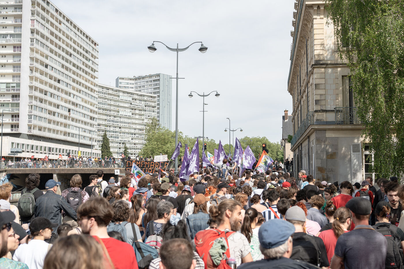 May Day 2025 protests in Rennes in the Ille-et-Vilaine department of France. Thousands of people protested.