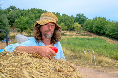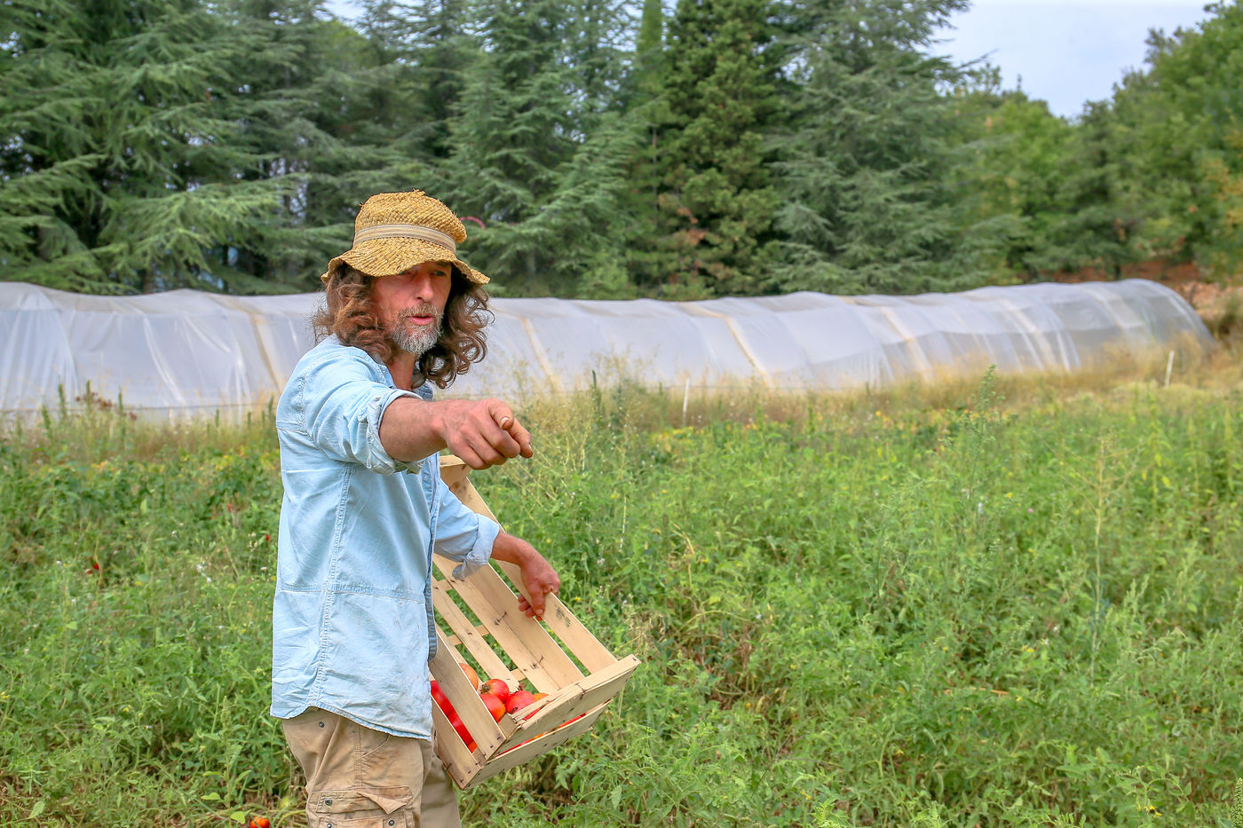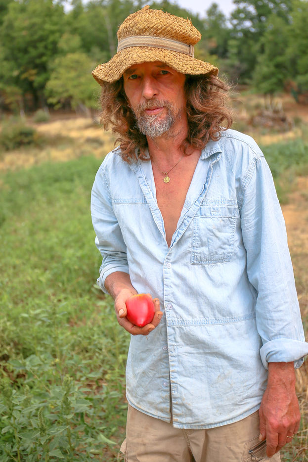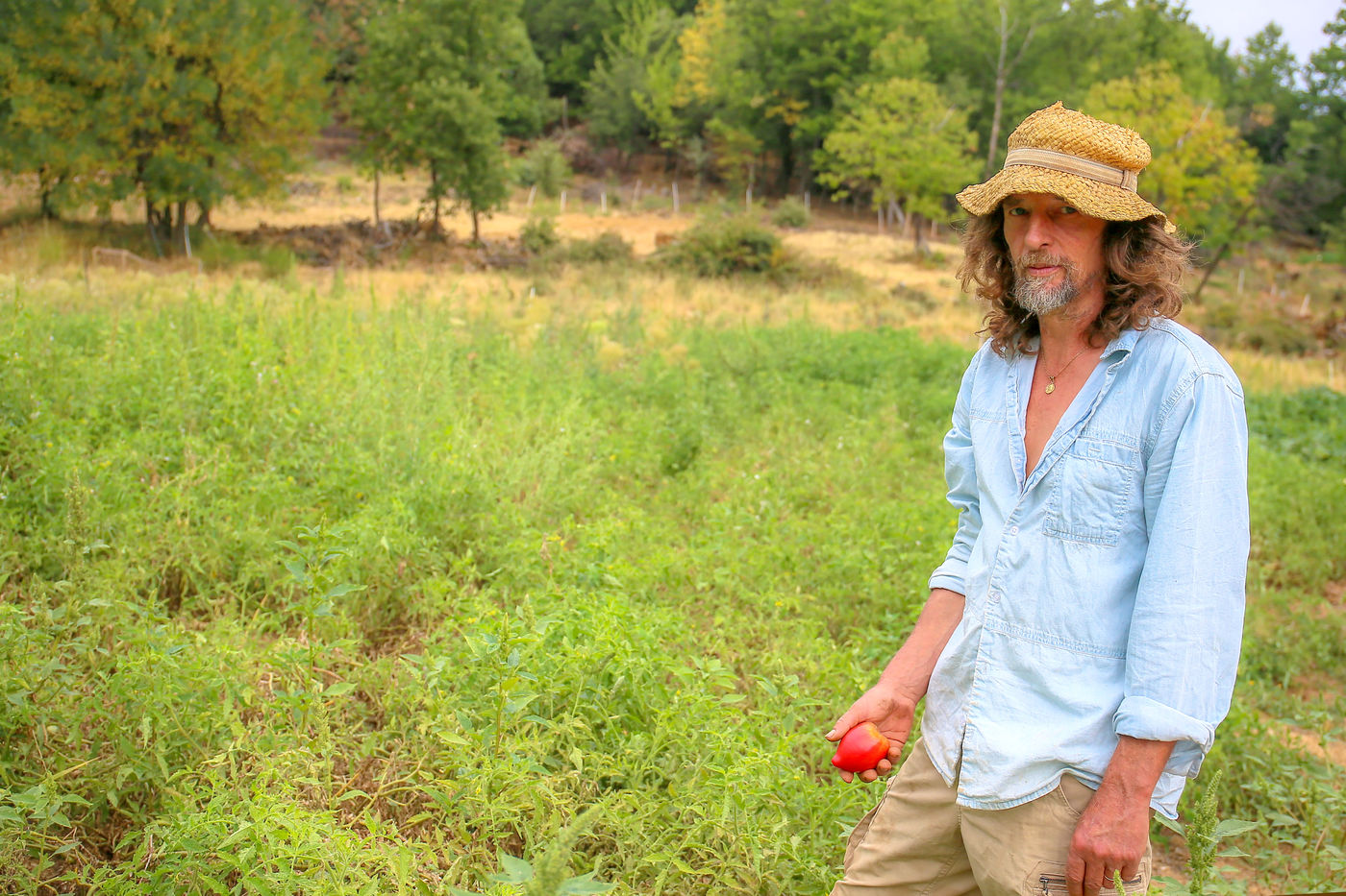Portrait de Pascal POOT, agriculteur autodidacte et créateur du Conservatoire de la tomate. Il est producteur de légumes bio et de semences sur 3 hectares dans le massif des Cevennes. Il cultive plus de 400 variétés de tomates et autres légumes sans irrigation, sans produits phytosanitaires et en sélectionnant des graines qui résistent a la sècherresse et au nouveau climat.