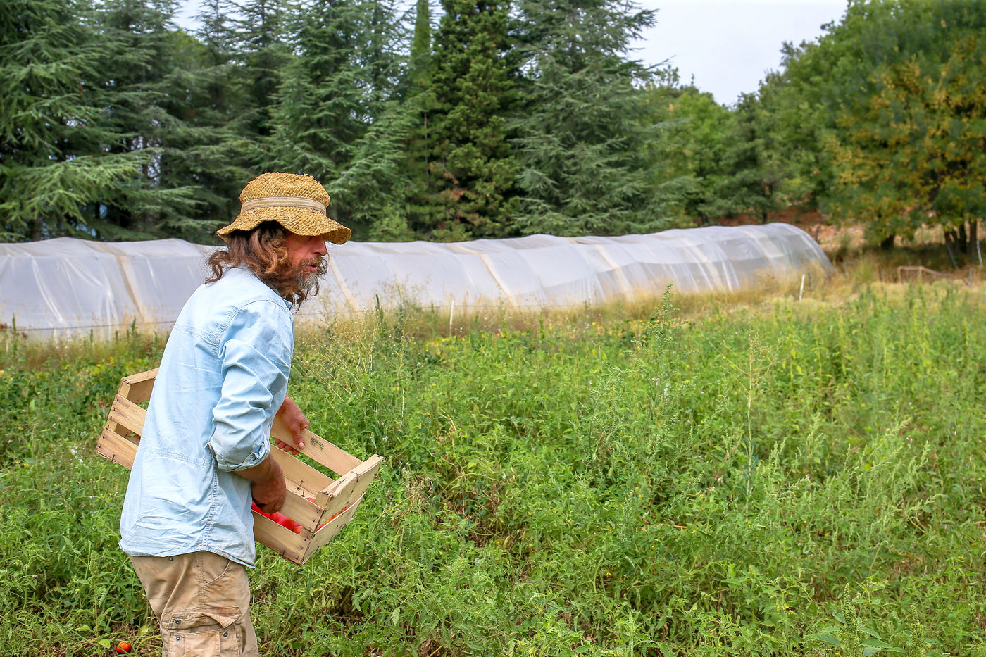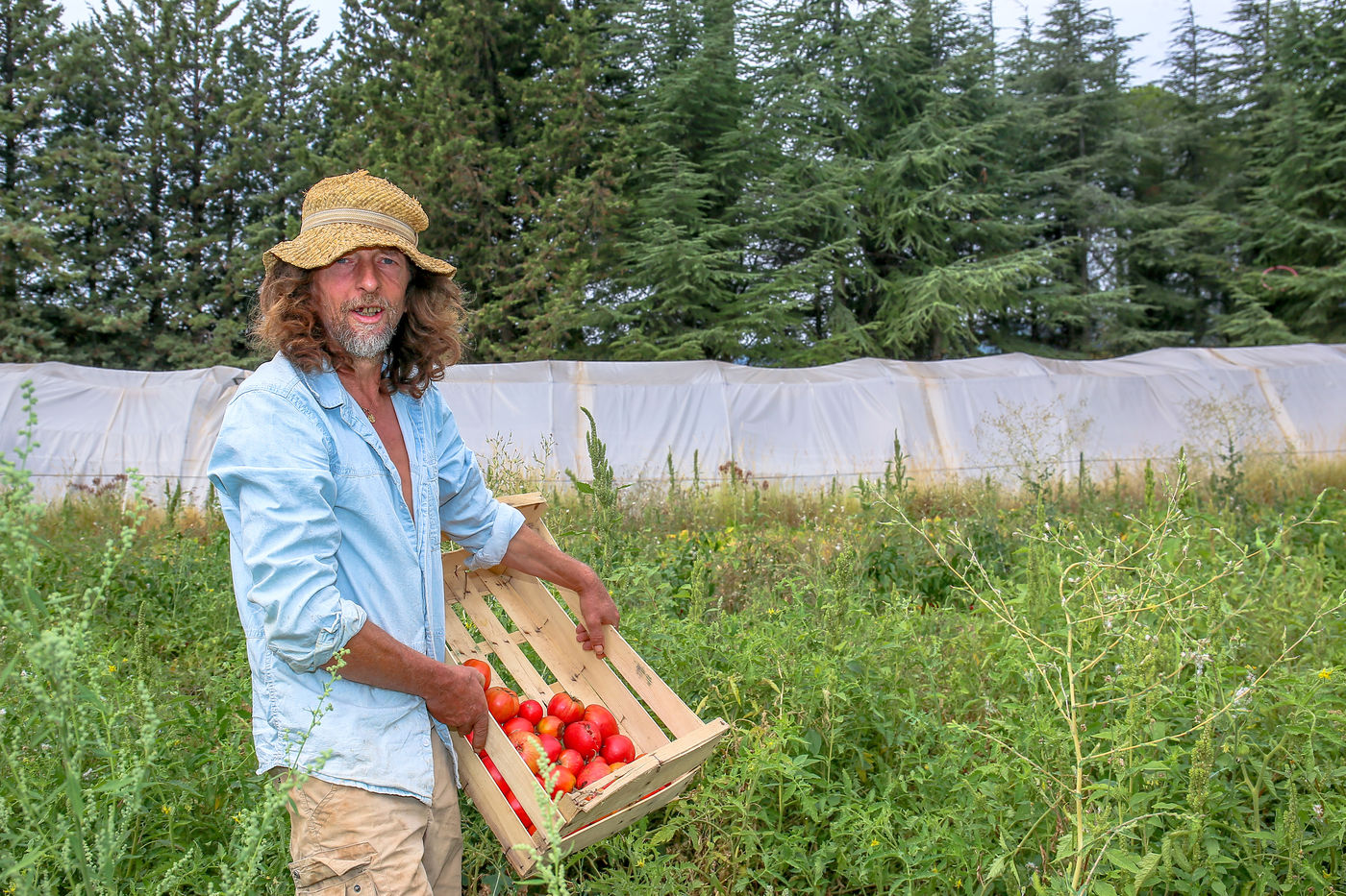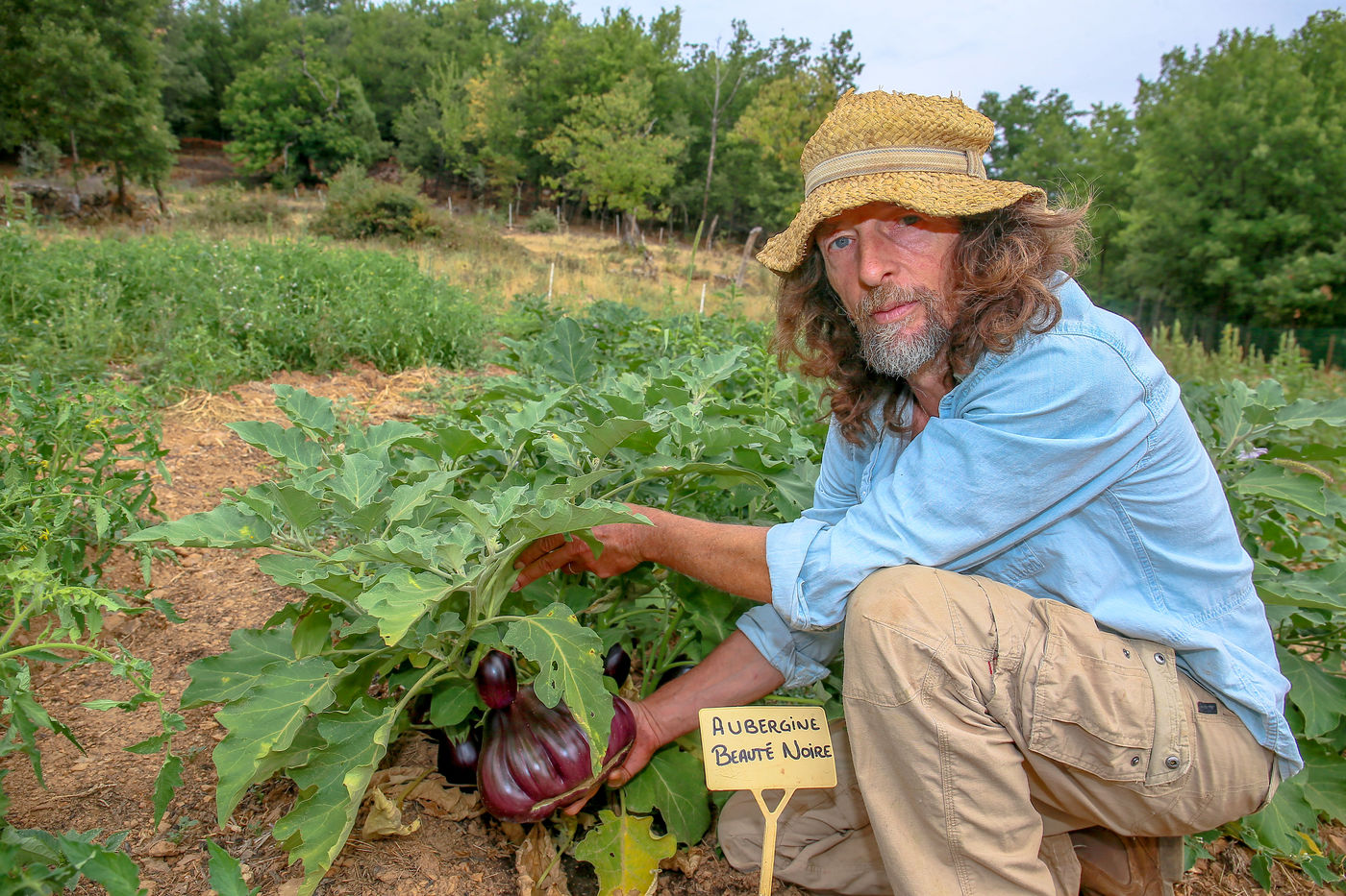Portrait de Pascal POOT, agriculteur autodidacte et créateur du Conservatoire de la tomate. Il est producteur de légumes bio et de semences sur 3 hectares dans le massif des Cevennes. Il cultive plus de 400 variétés de tomates et autres légumes sans irrigation, sans produits phytosanitaires et en sélectionnant des graines qui résistent a la sècherresse et au nouveau climat.