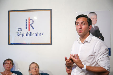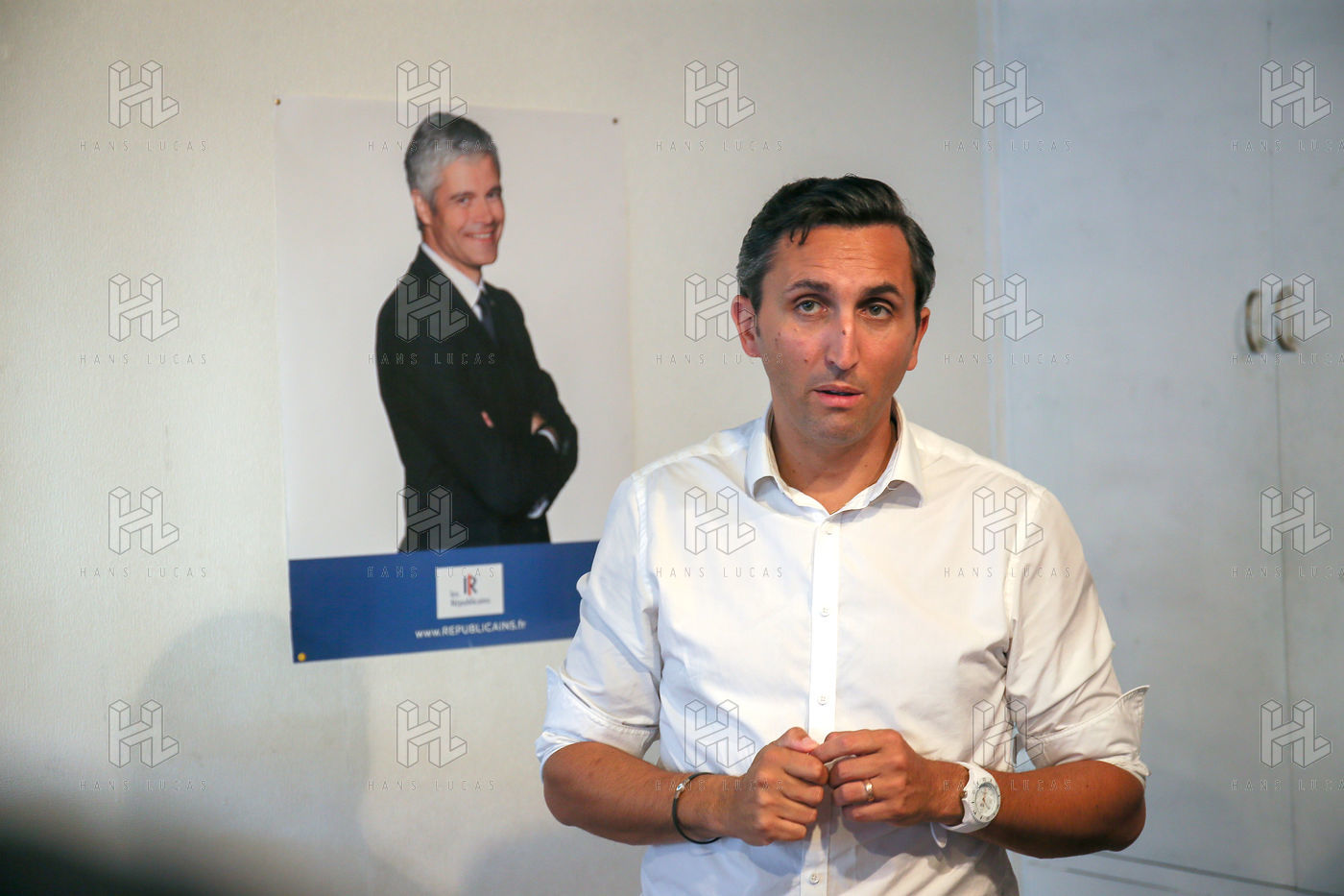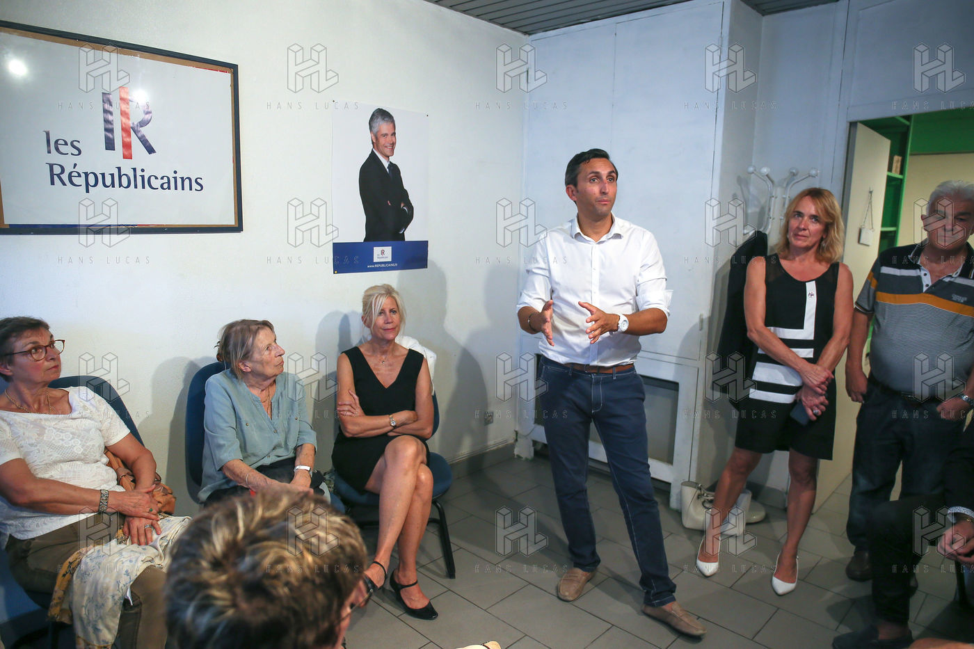 Le député du Vaucluse Julien Aubert organie une réunion publique avec des militants Les Républicains de la Drôme dans le cadre de sa candidature à la présidence du parti.