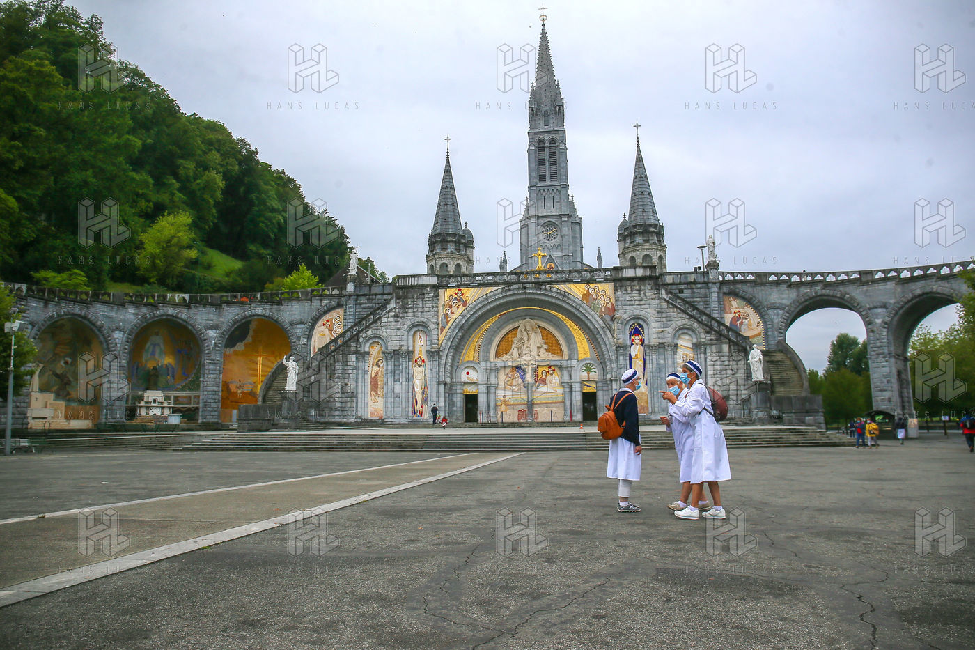 Habituellement très fréquentés par les touristes et pèlerins durant la fin du mois de juillet, le sanctuaire Notre Dame de Lourdes et son centre ville sont quasi vides en raison de la faible présence de vacanciers et de pèlerinages.