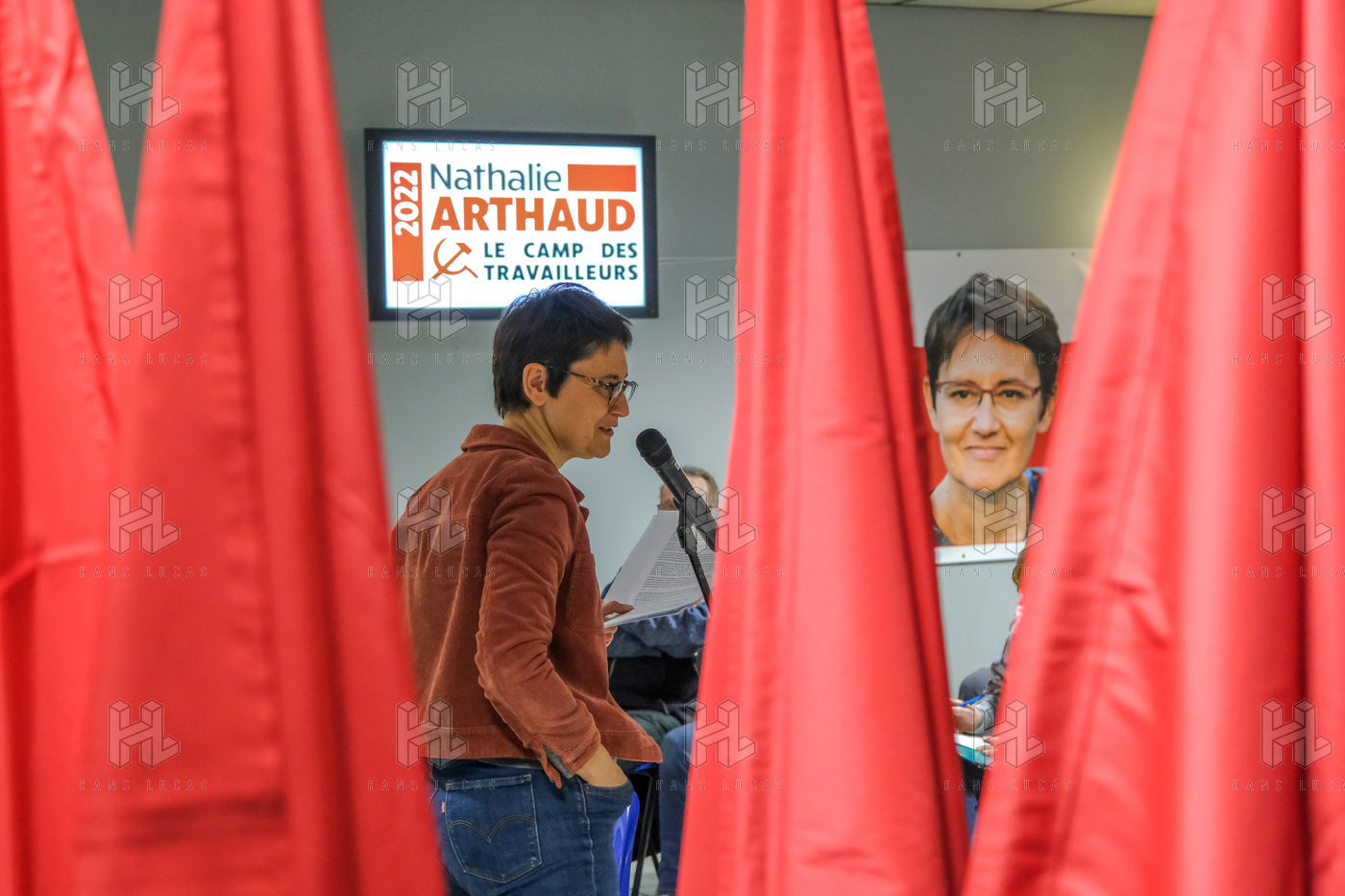 Campaign meeting of Nathalie Arthaud, candidate of the Lutte Ouvrière party for the 2022 presidential election