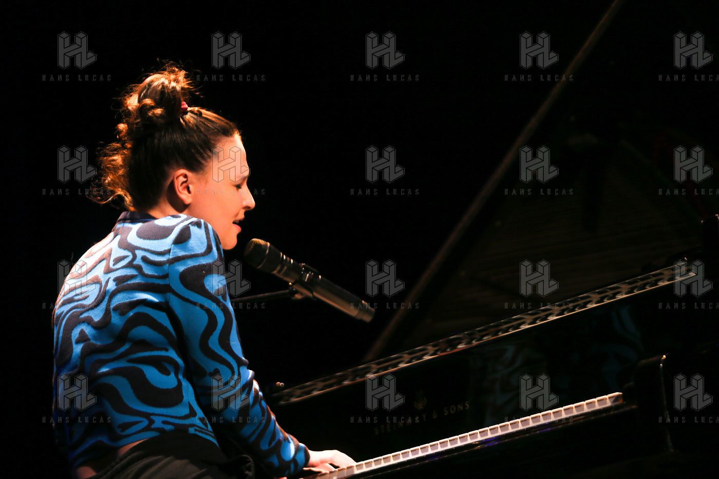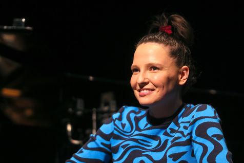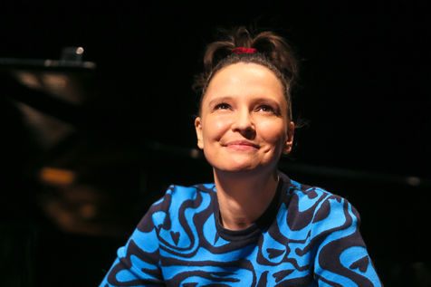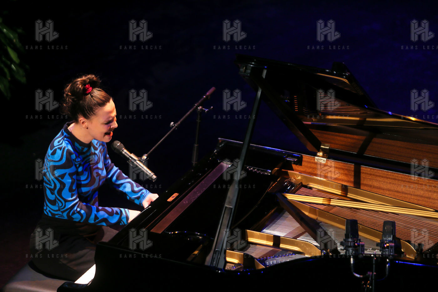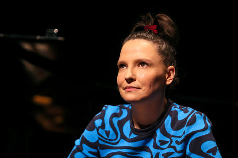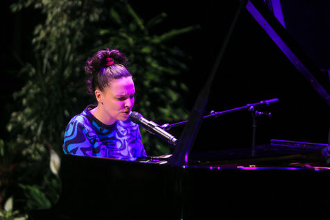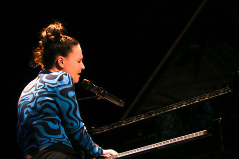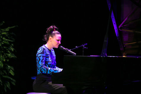Anne Sila, a singer from Valence, sings at the piano during the presentation of the Festival sur le Champ programme.