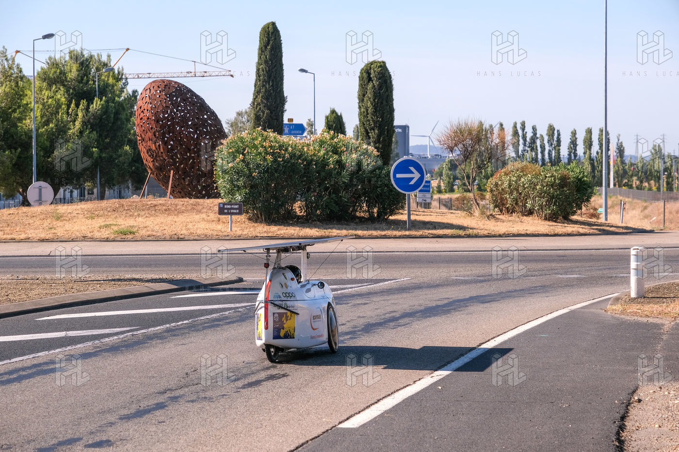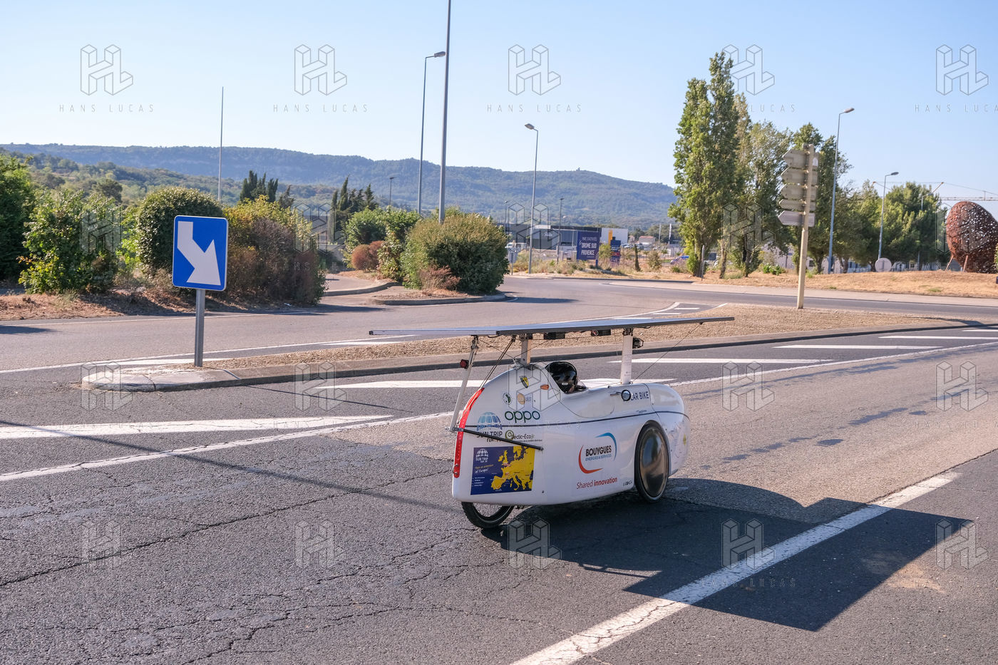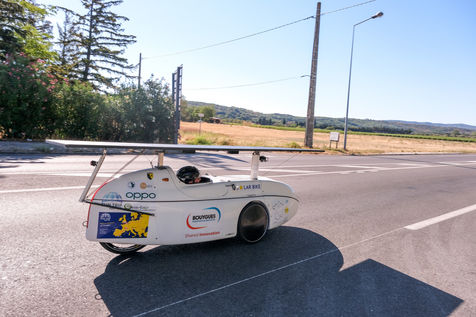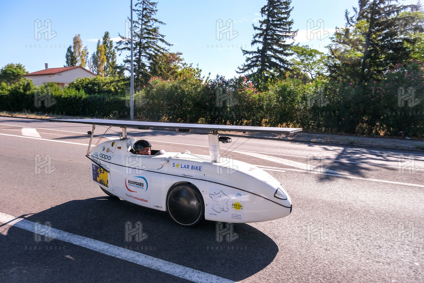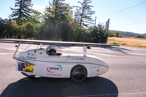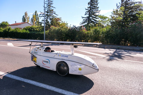 Jean-Marc Dubouloz, an unconditional and successful Sun Trip enthusiast, has completed the Paris - Marseille route, 850 kms in total energy autonomy and without assistance in less than 36 hours. With his solar electric bike he travels on the road with cars at more than 30 km/h. His Solar Bike is equipped with a photovoltaic solar panel on the roof.