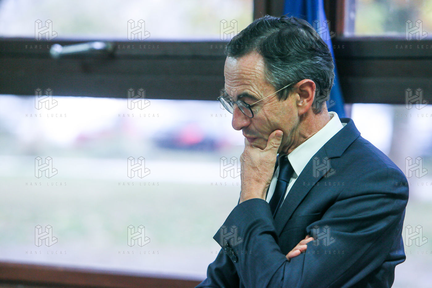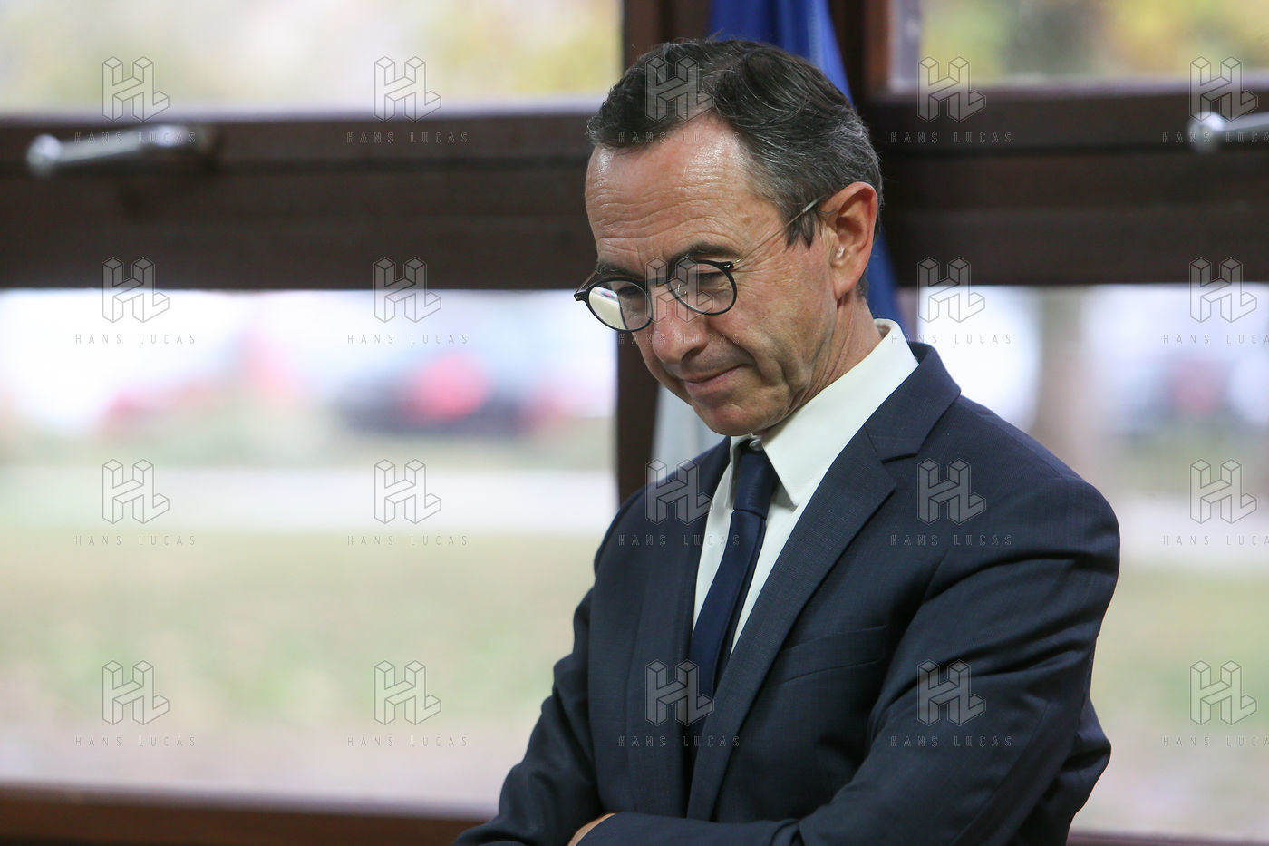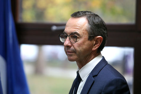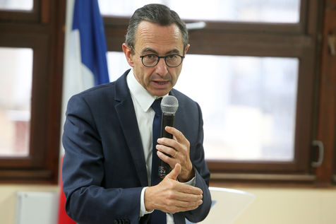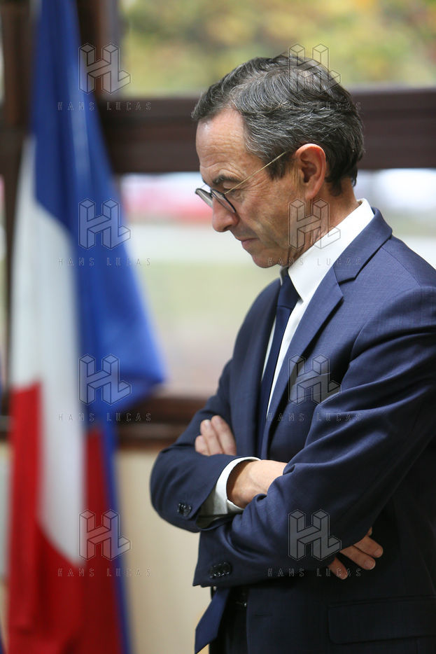 Bruno Retailleau, sénateur de Vendée et président du groupe Les Républicains au Sénat participe à une réunion avec les militants de la fédération LR de la Drôme dans le cadre de sa campagne pour la présidence du parti de droite.