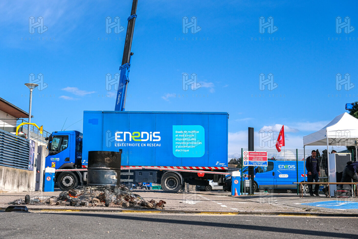 Le siège d'Enedis à Valence est victime ce jeudi d'une coupure sauvage de courant prive le site d'électricité. Dans le même temps des agents grévistes bloquent la base opérationnelle d'Enedis dans la zone des Auréats au sud de Valence.