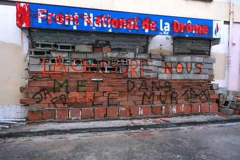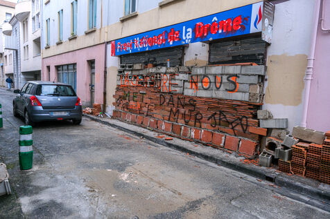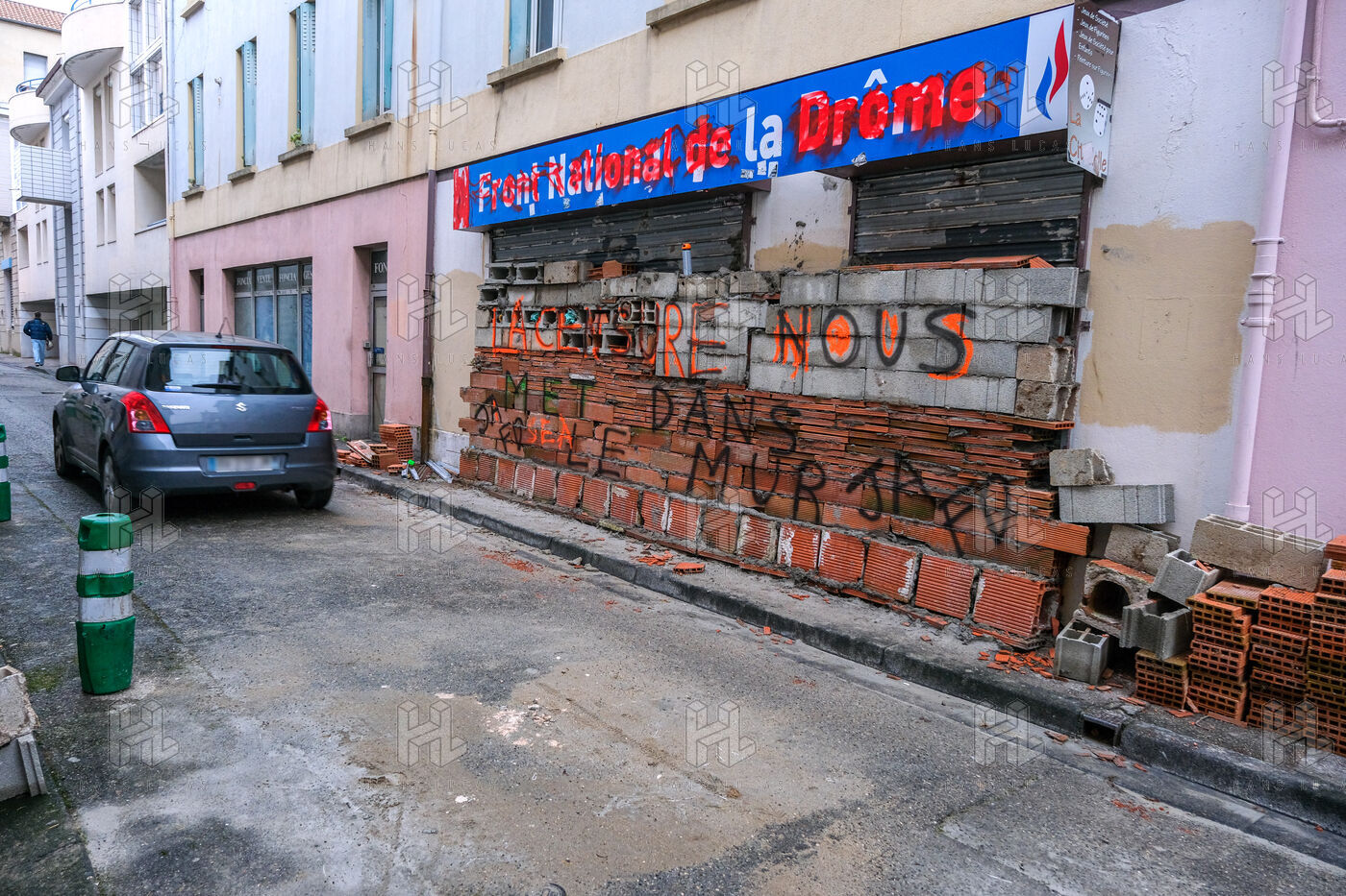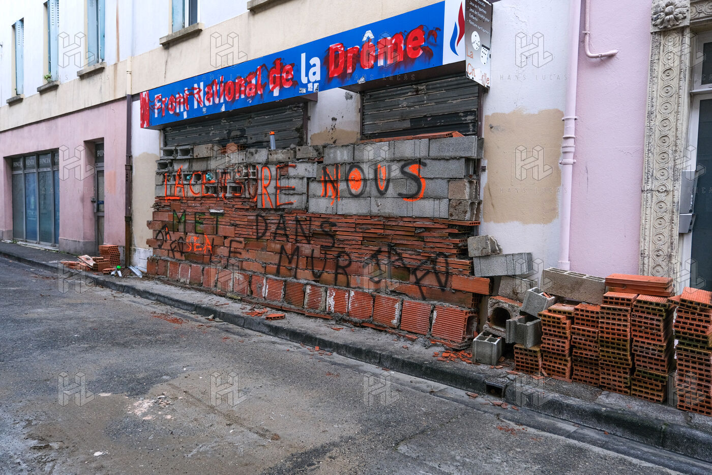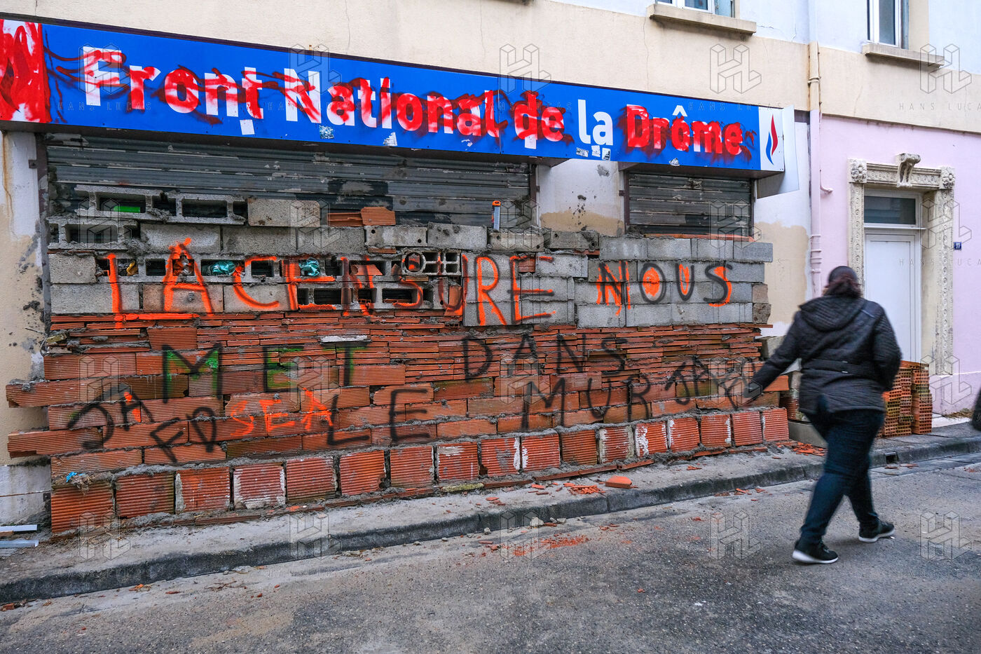 Protest action by Farmers of Drôme against government censorship in front of the departmental headquarters of the political party the National Rally.