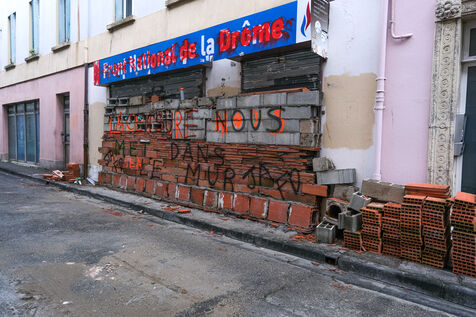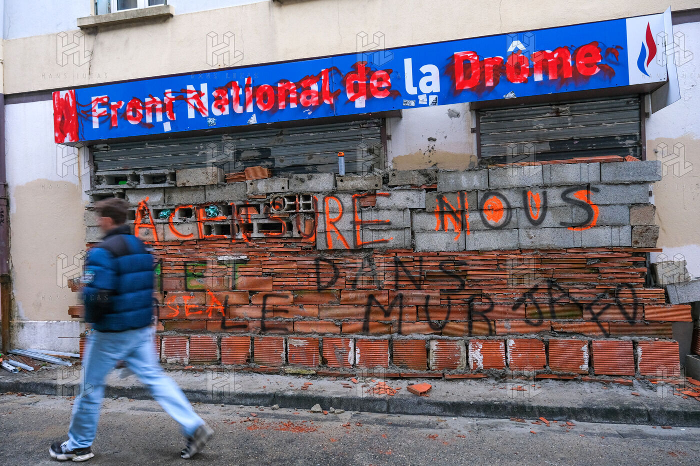 Action de protestation des Agriculteurs de la Drôme contre la censure du gouvernement devant la permanence départementale du parti politique le Rassemblement National.