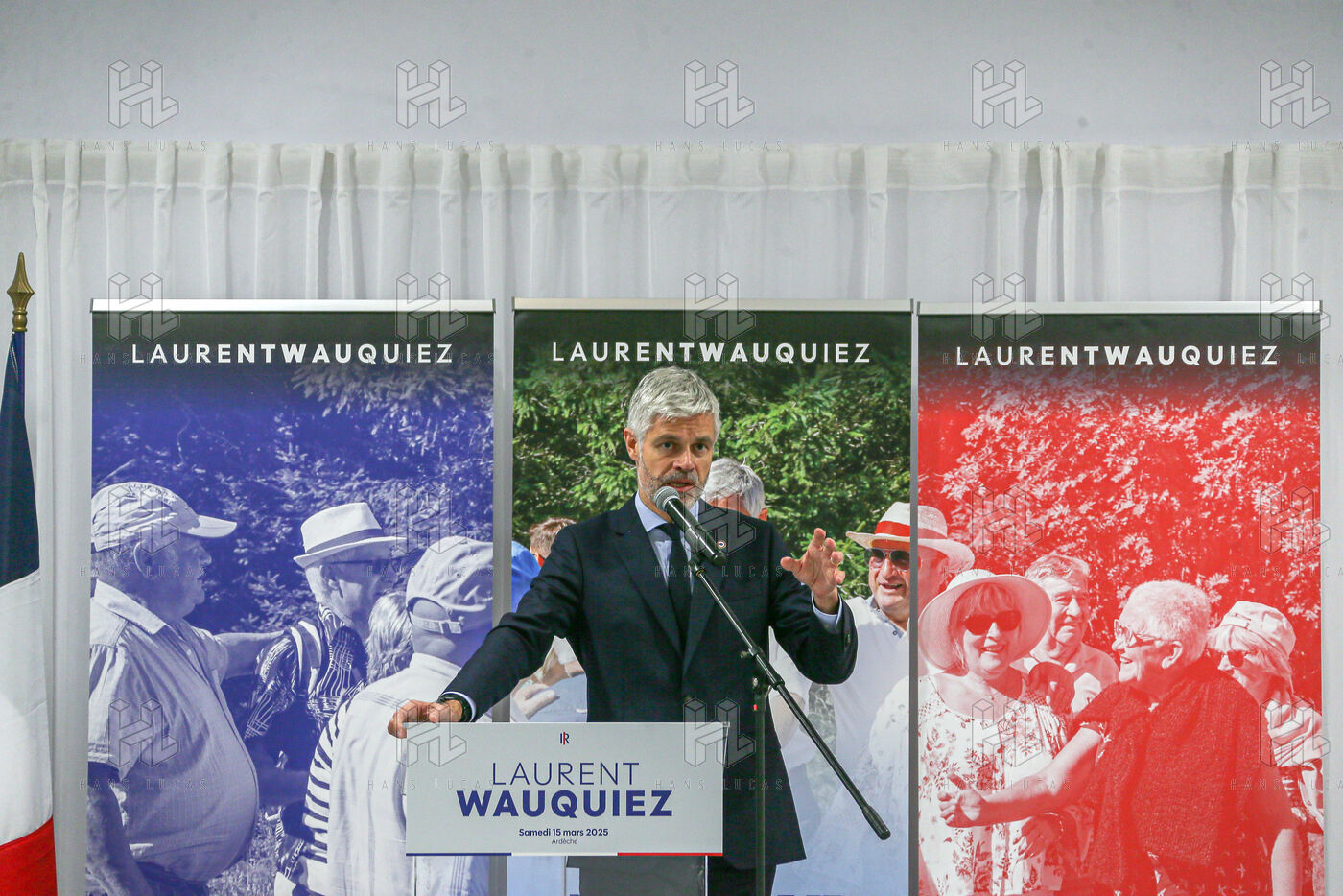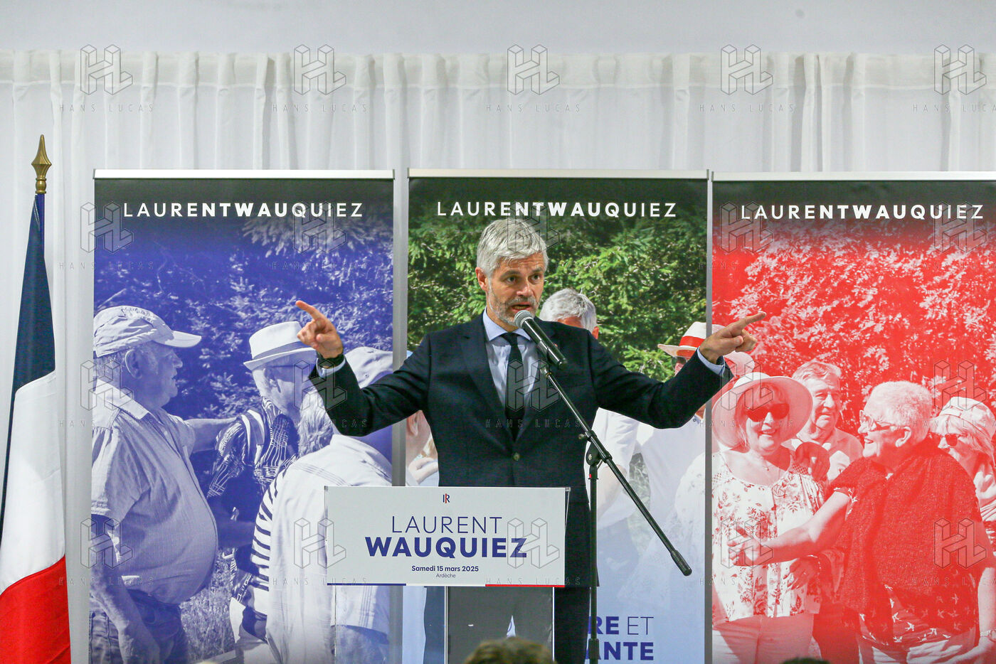 Le chef de file des députés La Droite Républicaine, Laurent Wauquiez, tient une réunion publique en Ardèche dans le cadre de la campagne pour la présidence de la présidence du parti de droite Les Républicains.