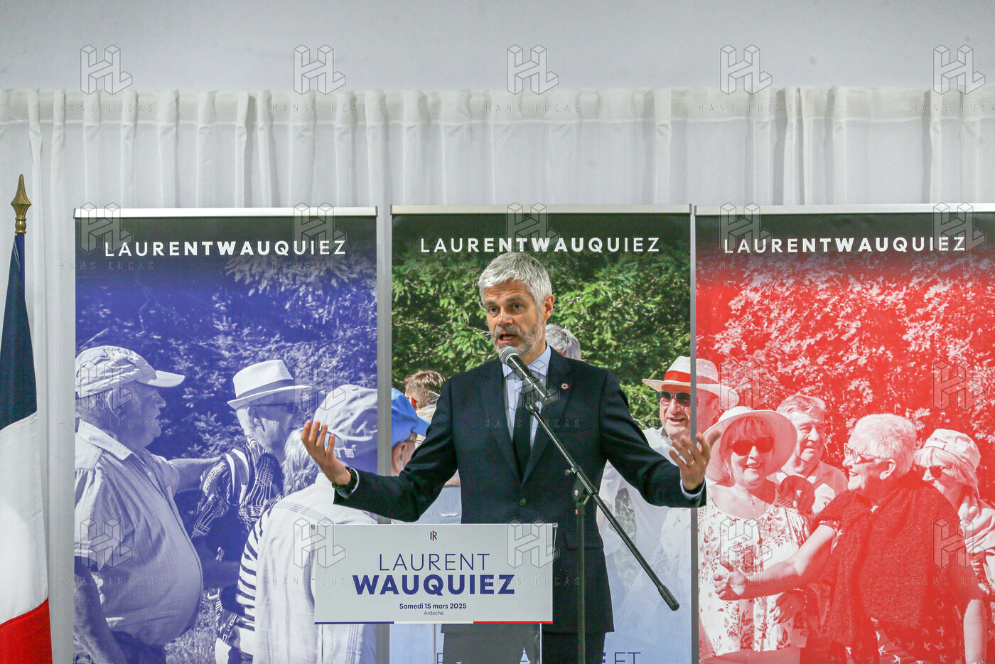 The leader of La Droite Républicaine deputies, Laurent Wauquiez, holds a public meeting in Ardèche as part of the campaign for the presidency of the right-wing Les Républicains party.