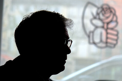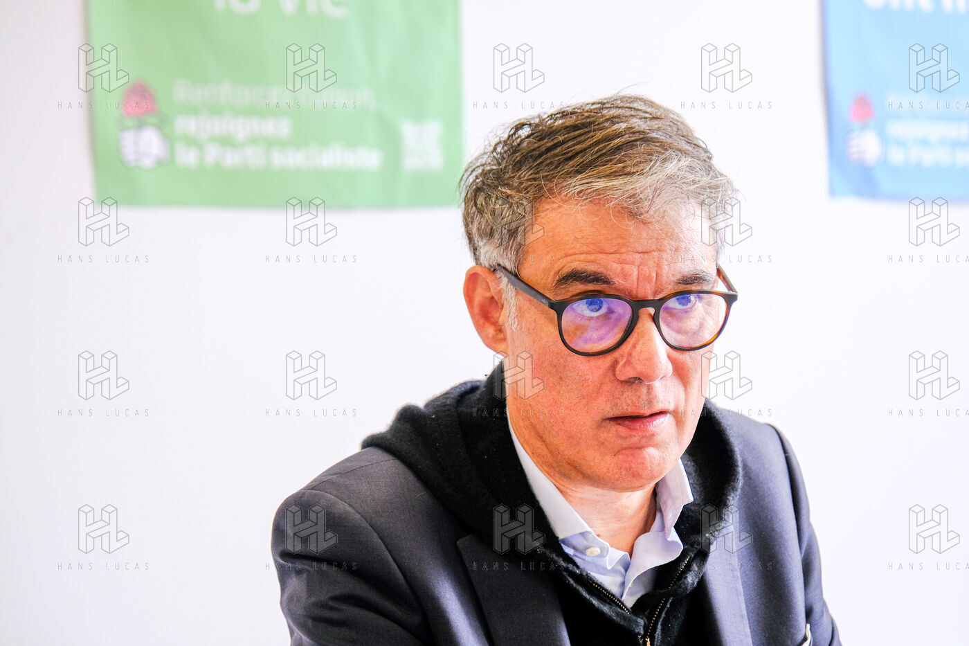 The first secretary of the Socialist Party at a press conference in Drôme.