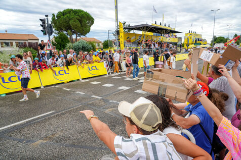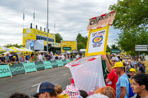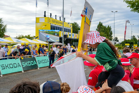 Les spectateurs du Tour de France cycliste masculin sont friands des nombreux cadeaux distribués par les hôtes et hôtesses de la caravane publicitaire.