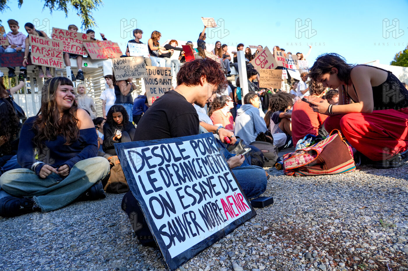 Les collégiens, lycéens et étudiants des classes préparations aux grandes écoles de la cité scolaire Camille Vernet n'ont pas pu rentrer dans l'établissement durant la matinée, bloqué par une centaine de jeunes manifestants, assis devant les grilles d'entrées, dans le cadre de la protestation du mercredi 10 septembre "Bloquons Tout".