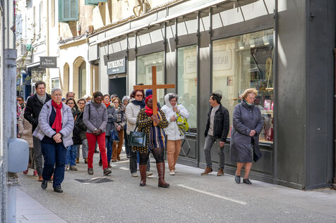 Around a hundred Catholic faithful take part in the Good Friday Stations of the Cross, during Easter week, in the streets of downtown Valence, a devotion in memory of the last hours of Jesus' life.