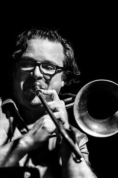 Le duo Chet It Out avec le tromboniste Dan Diruzza et le guitariste César Jacquot au Gazette Café (Montpellier), le 06/01/2023.