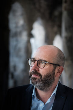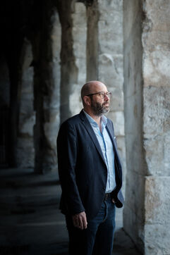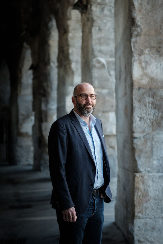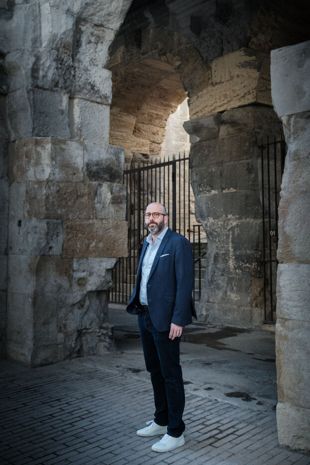 Portrait de Vincent Bouget (membre du PCF, gauche unie hors LFI), nouveau maire de Nîmes, aux arènes de Nîmes (Gard), le 4 avril 2026.