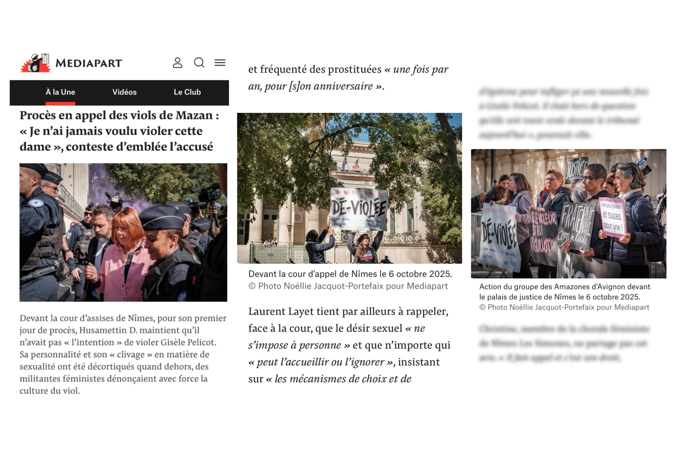 Noëllie Jacquot-Portefaix Publications Séries / Archive Culture — Environnement — Politique — Société — Spiritualité — Sélection de séries De Standaard Weekblad Une De Standaard Weekblad Revue Pays, novembre 2025. Revue Pays, novembre 2025. Revue Pays, novembre 2025 Magazine Prier, Novembre 2025 Mediapart, 06/10/2025 Mediapart, 02/10/2025 Santé Magazine, 03/09/2025 La NVO, septembre 2025 Reporterre, 18/07/2025 L'Humanité, 27/06/2025 La Vie, 28/11/2024 La Croix L'Hebdo, 26/10/2024 Nouvel Obs, 19/07/2024 Nouvel Obs, conférence, 18/07/2024 Mediapart, reportage 22/06/2024 La Vie, Portrait, 20/06/2024 Hiam Abbass pour l'Humanité, 02/05/2024 Mediapart, reportage 27/04/2024