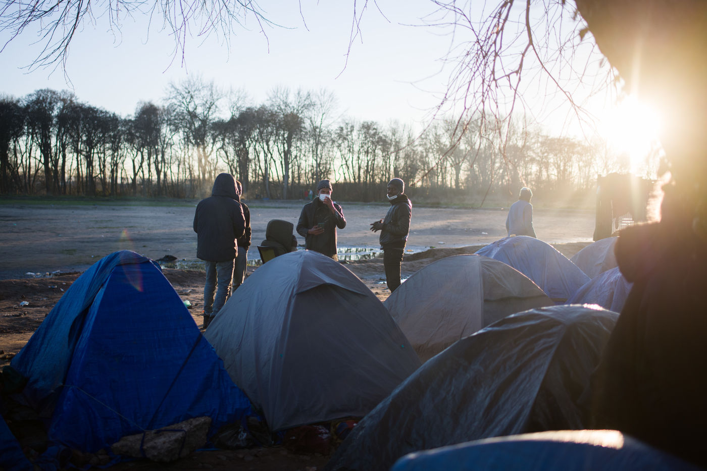 Images des camps de migrants dans l agglomeration de Calais et des plages d'où ont lieux les departs pou l Angleterre.