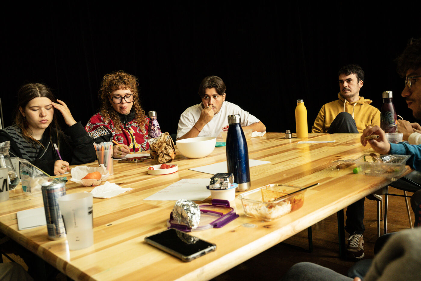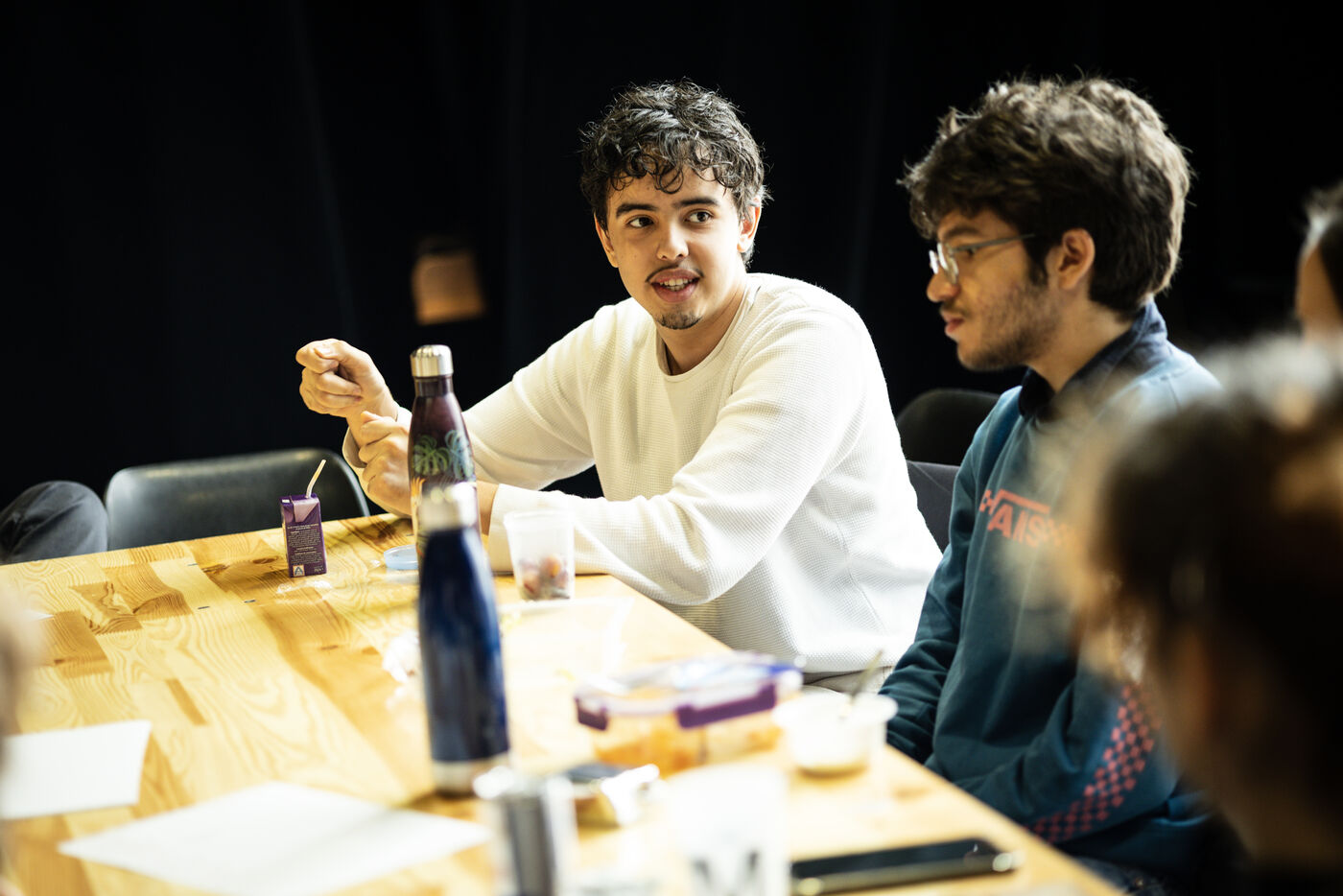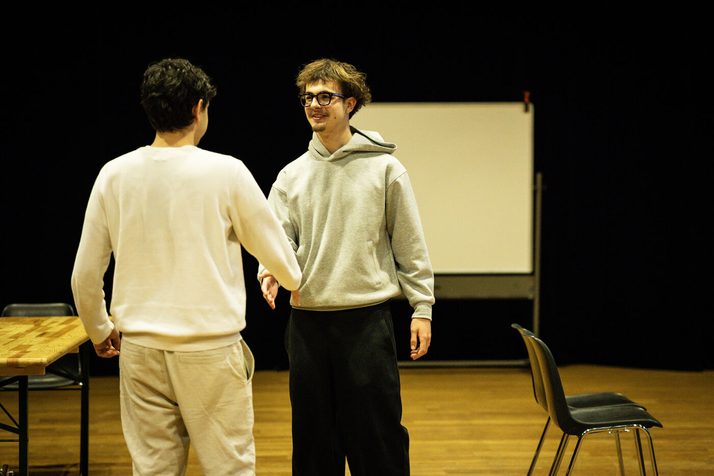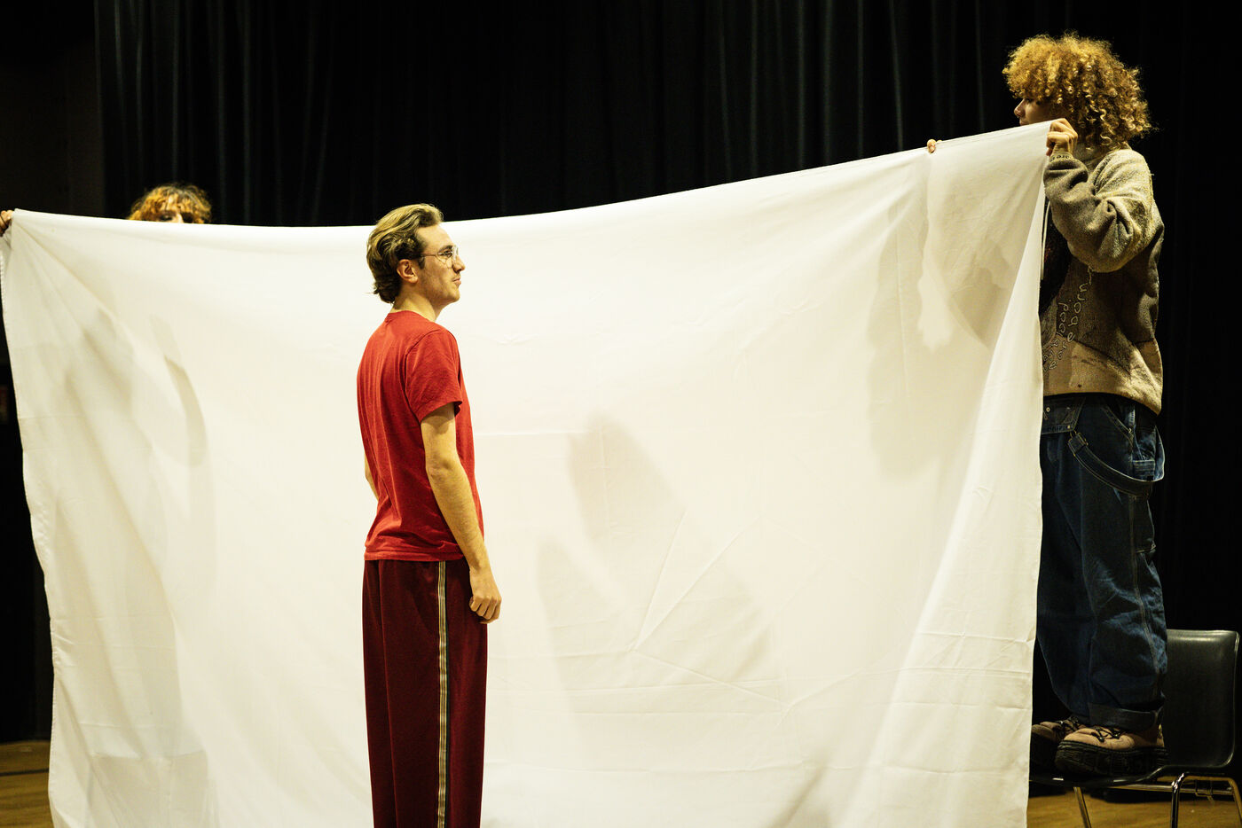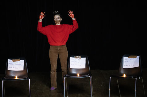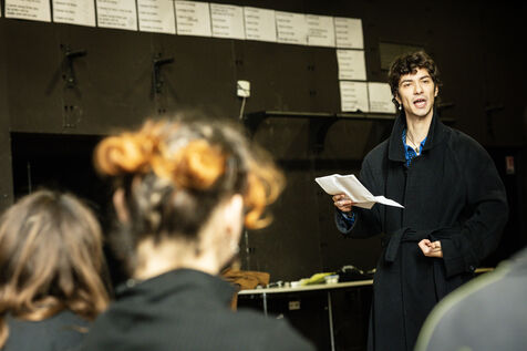 This series of photographs documents the theater workshop of a group called Les Adelphes, at the Théâtre Public de Montreuil, on December 6, 2025, supervised by the director of the Théâtre Public de Montreuil, Pauline Bayle. The Théâtre Public de Montreuil is launching the fourth edition of its Les Adelphes mentoring program for 16-25 year olds. The group will attend theater workshops throughout the 2025-2026 season. The program confirms the institution's commitment to young people. Participants will discover what goes on behind the scenes in live performance, experimenting with creation, sharing, and collective work.