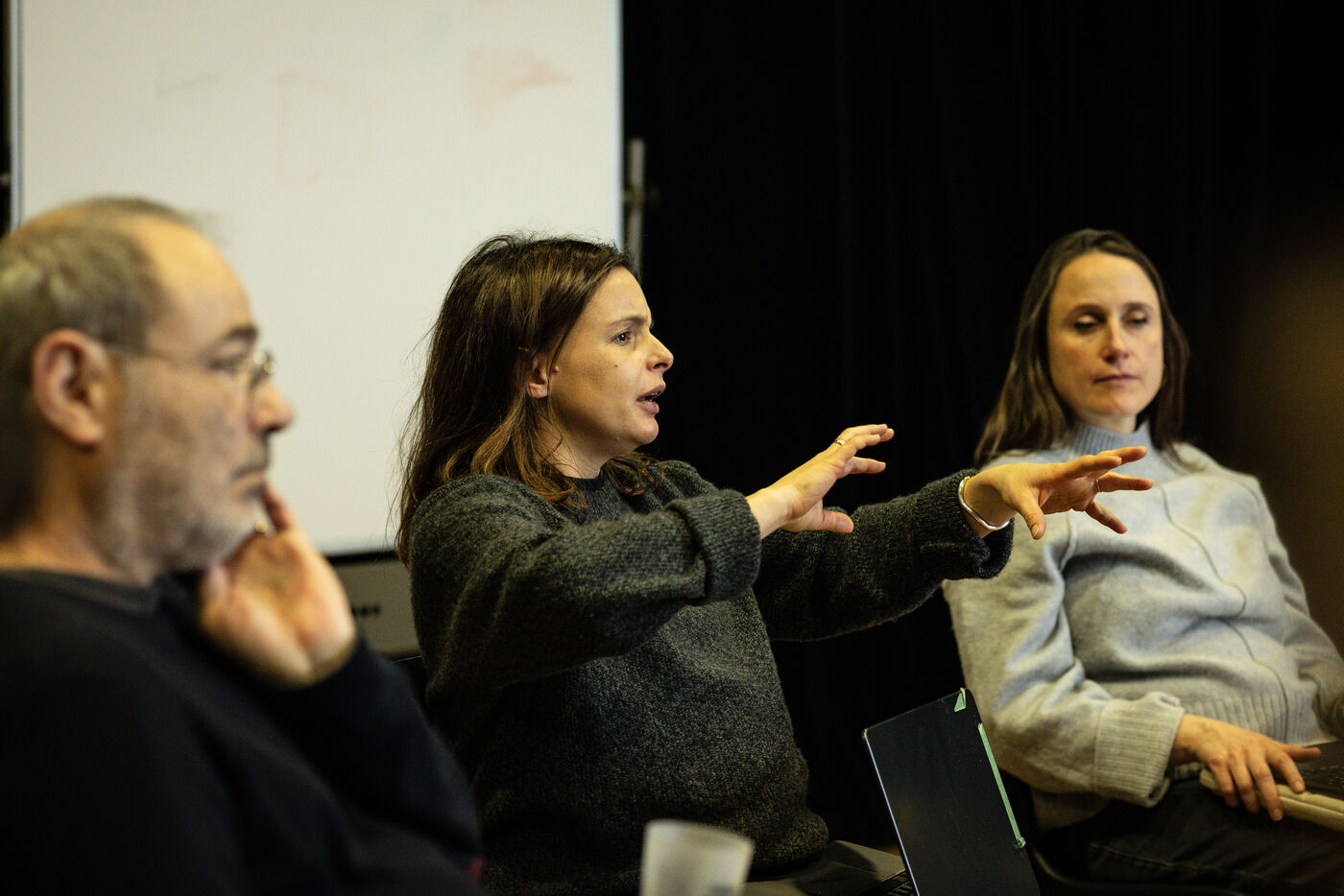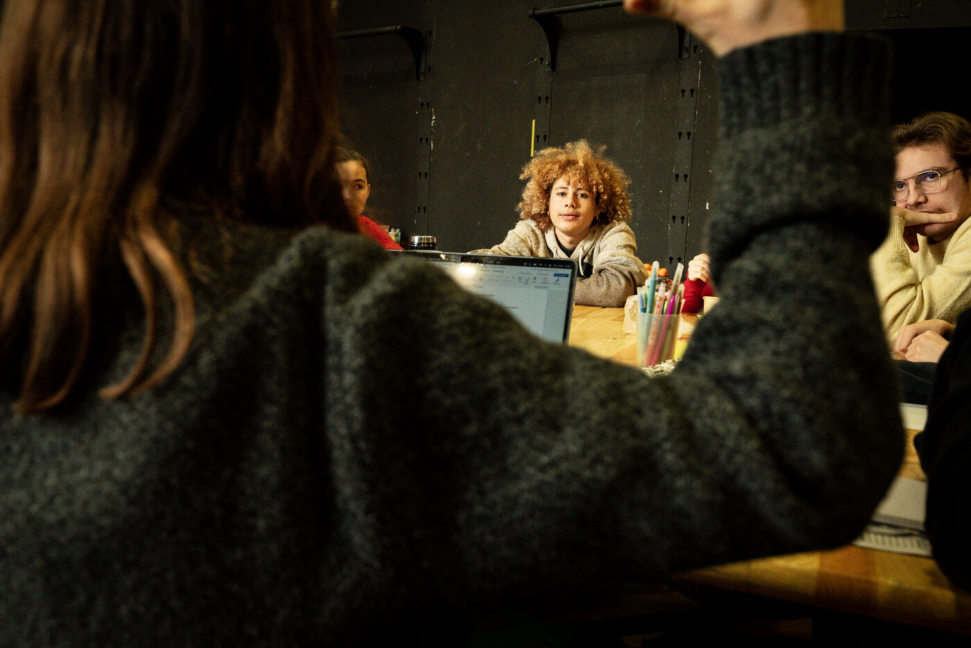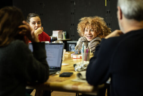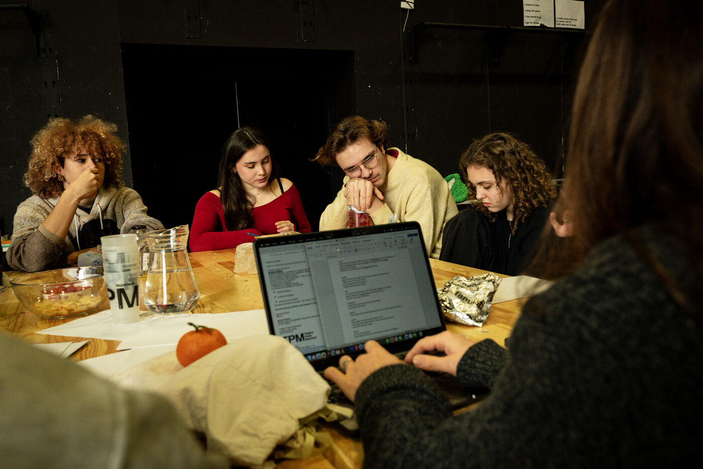 Cette série photographique documente l’atelier de théâtre d'un groupe nommé Les Adelphes, au Théâtre Public de Montreuil, le 6 décembre 2025, encadré par la directrice du Théâtre Public de Montreuil, Pauline Bayle. Le Théâtre Public de Montreuil lance la quatrième édition de son programme de mentorat Les Adelphes destiné aux 16-25 ans. Le groupe suit des ateliers de théâtre tout au long de la saison 2025-2026. Le dispositif confirme l’engagement de l’institution en faveur de la jeunesse. Les participants découvrent les coulisses du spectacle vivant, expérimentant création, partage et travail collectif.