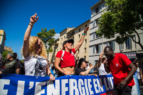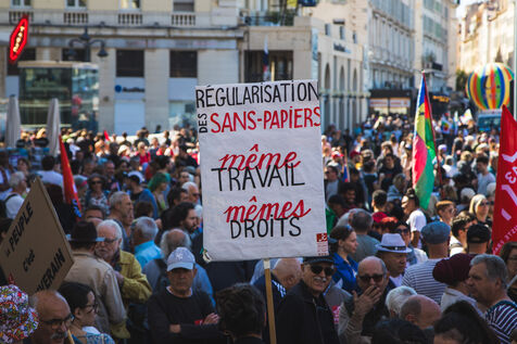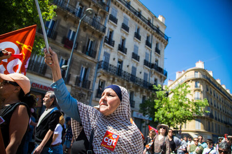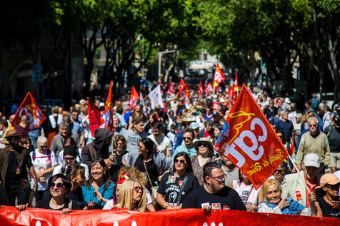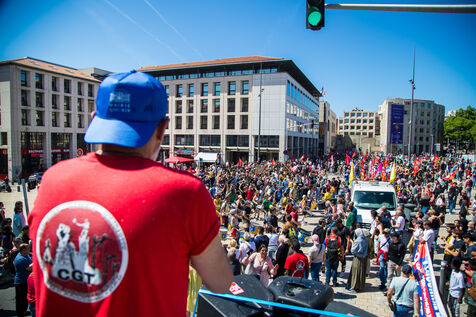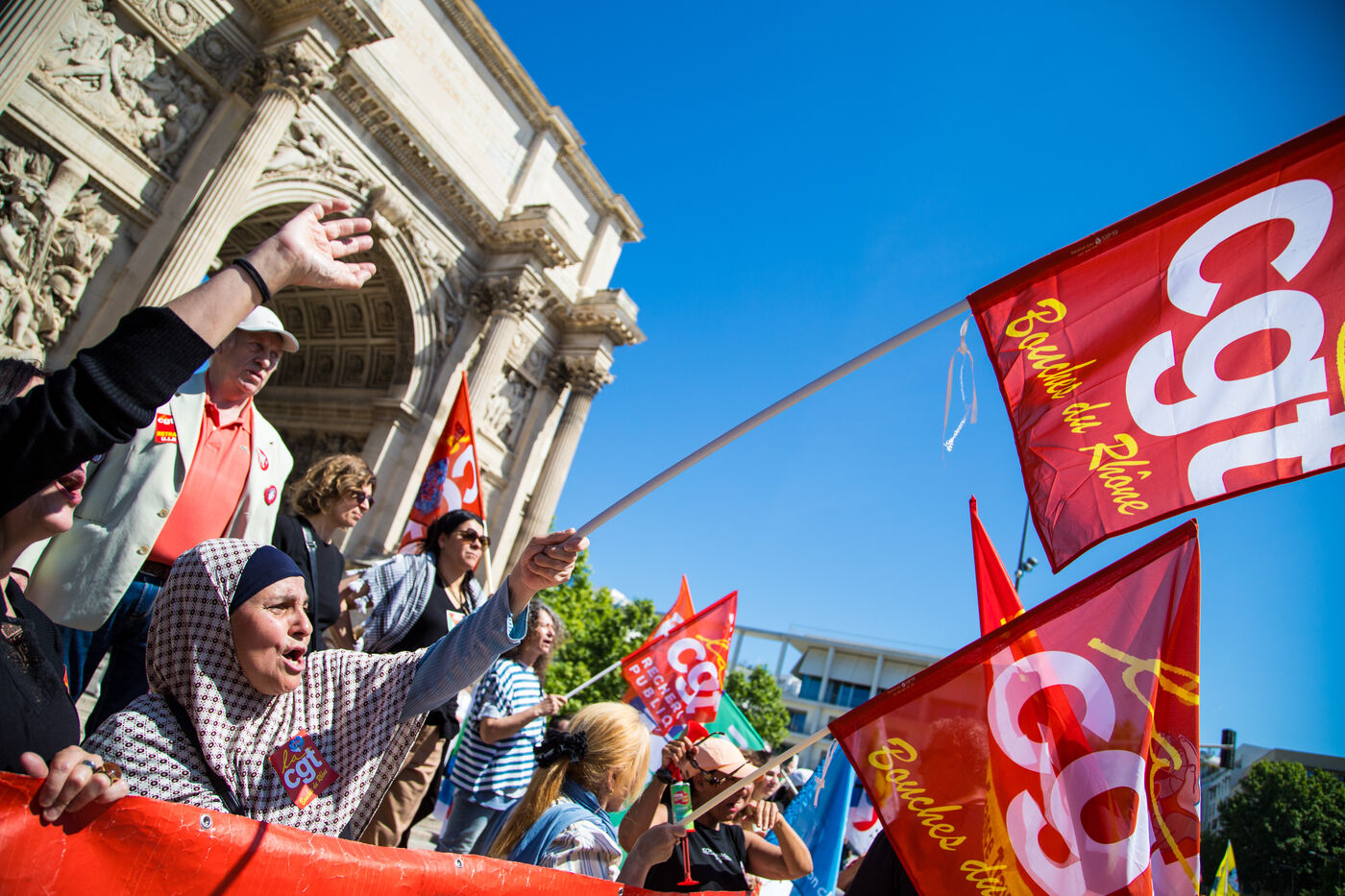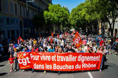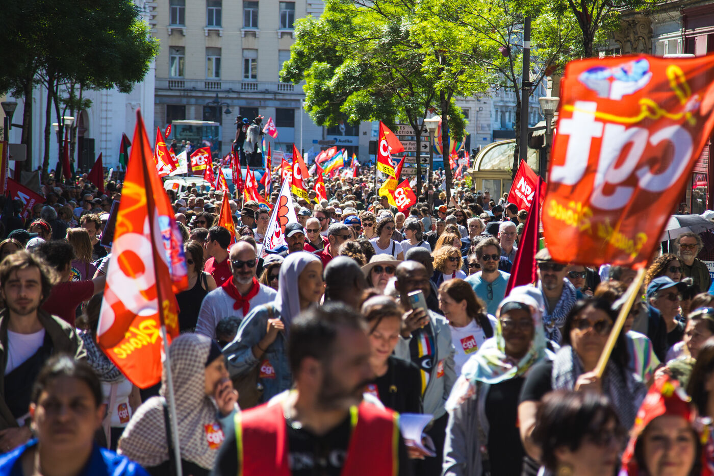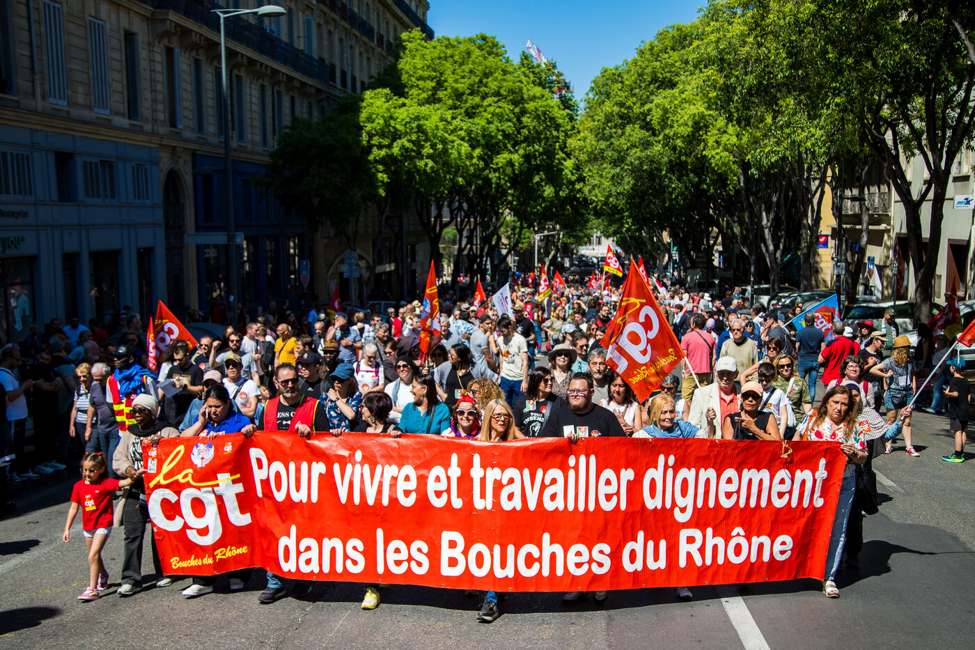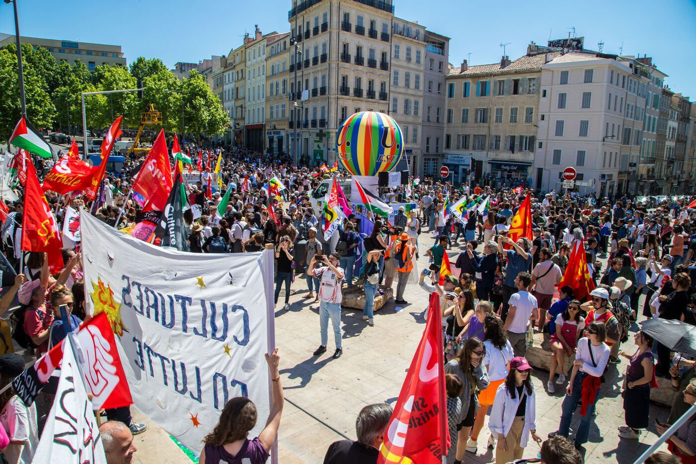 Trade union demonstration in Marseille, in the Bouches-du-Rhône department, on the occasion of Labour Day, May 1st, 2025. Thousands of demonstrators took to the streets of the city center to demand social and labor rights, in a context of social and economic tensions. The event reflects the diversity of demands expressed by trade unions, left-wing political organizations, and engaged citizens.