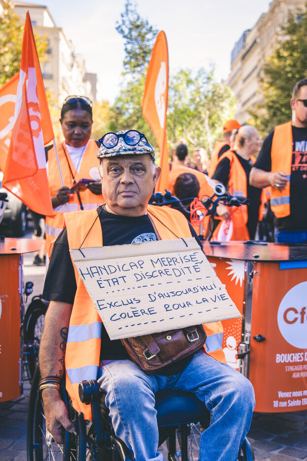 National strike in Marseille, in the Bouches du Rhone department, on September 18, 2025. Thousands of demonstrators gathered in the streets of the city center to protest the 2026 budget plan and to defend public services as well as purchasing power. The photo series shows the presence of unions, teachers, municipal workers, and engaged citizens, as well as moments of tension between protesters and law enforcement.