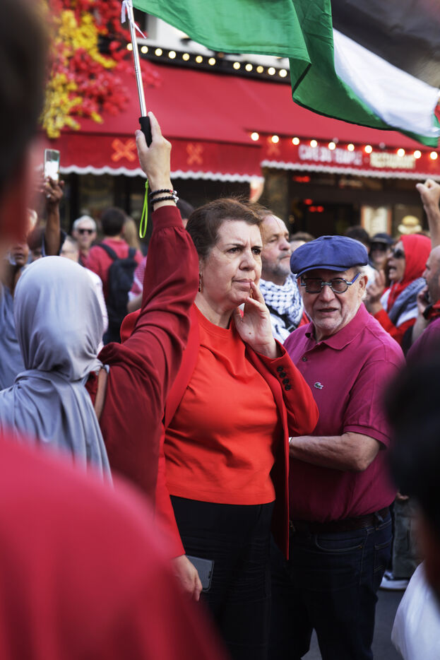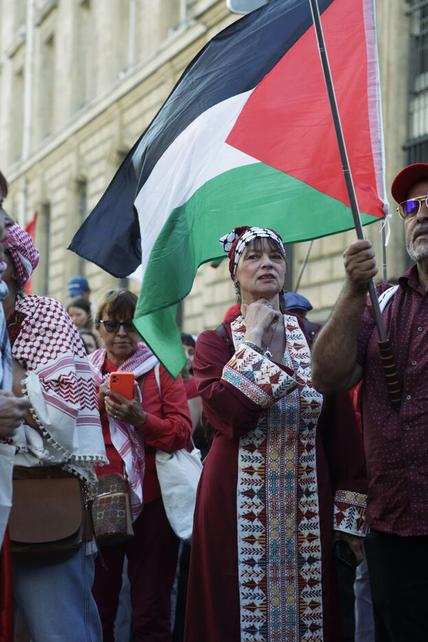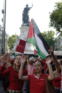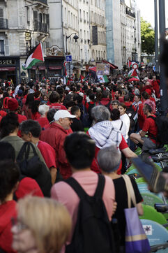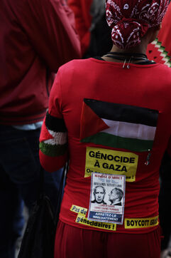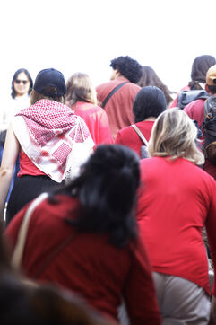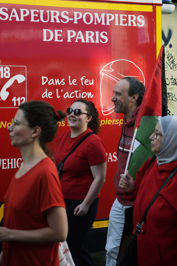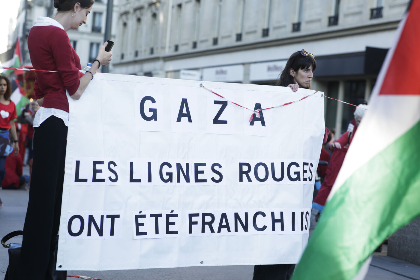 Manifestation à caractère apolitique, organisée par des ONG, notamment Amnesty International, avec pour seule exigence d’être vêtue de rouge, pour rappeler que toutes les lignes rouges avaient été dépassées à Gaza. Notamment sur le plan humanitaire, où l’aide était largement insuffisante et mal organisée.