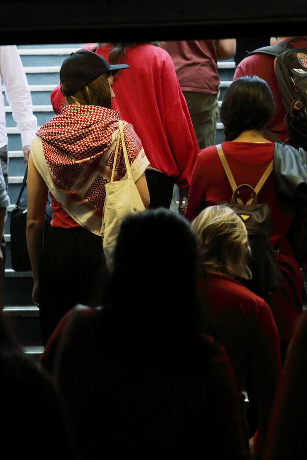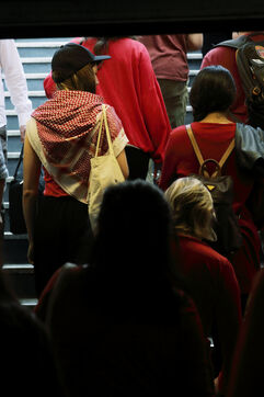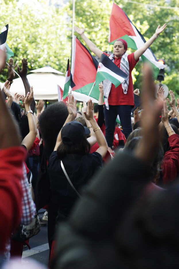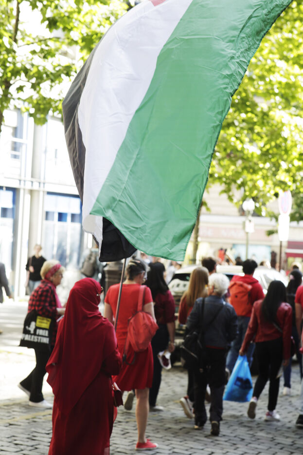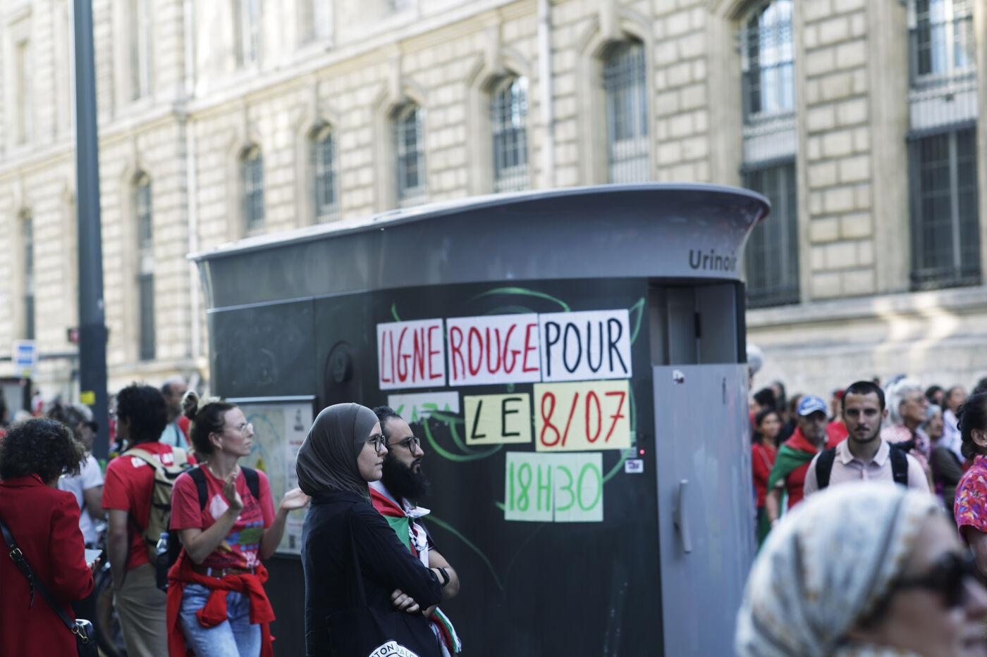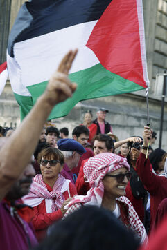 Manifestation à caractère apolitique, organisée par des ONG, notamment Amnesty International, avec pour seule exigence d’être vêtue de rouge, pour rappeler que toutes les lignes rouges avaient été dépassées à Gaza. Notamment sur le plan humanitaire, où l’aide était largement insuffisante et mal organisée.