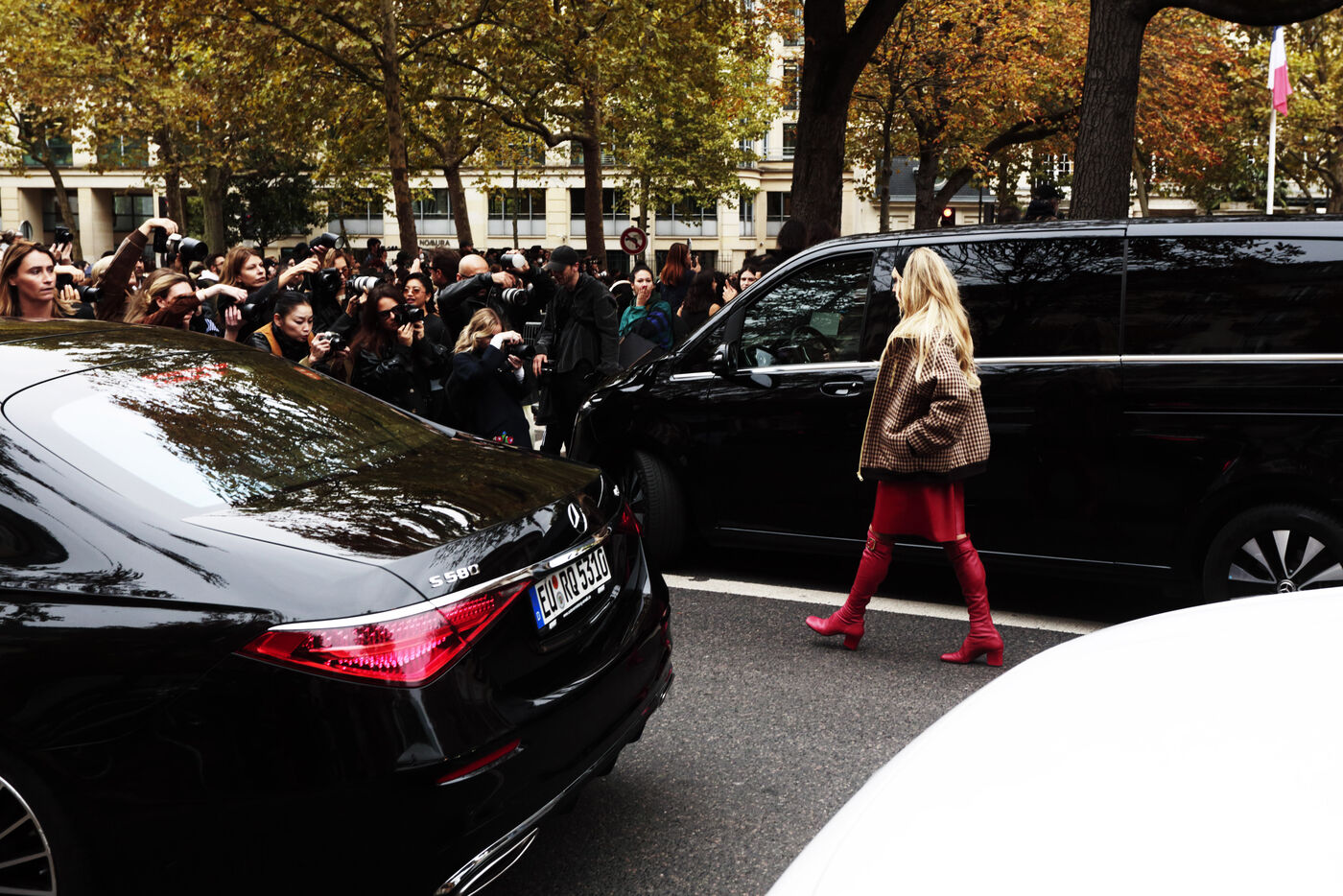 En cette avant-dernière journée de la Fashion Week, la maison Miu Miu a créé l'événement en provoquant de véritables embouteillages sur l’avenue Wilson. L’arrivée en masse des invités, la présence remarquée d’influenceurs et de fashionistas, tous désireux de se faire photographier, ont attiré les regards et ralenti la circulation. Un engouement à la hauteur de l’influence de la marque.
